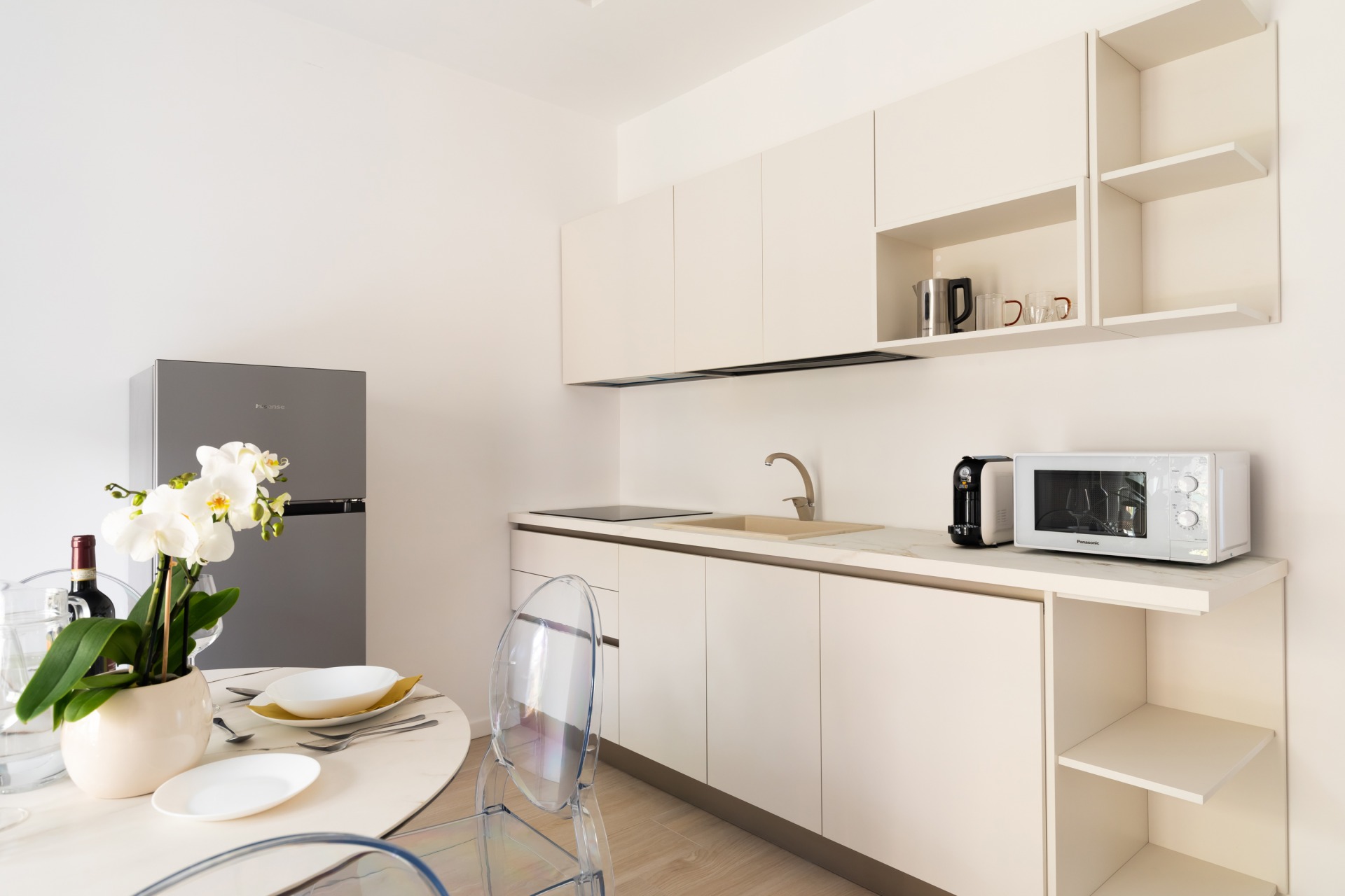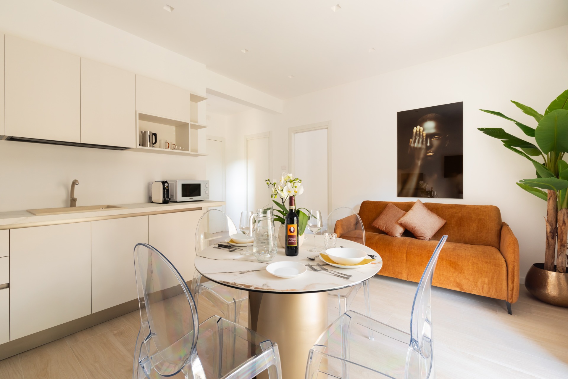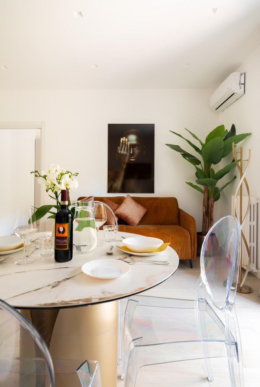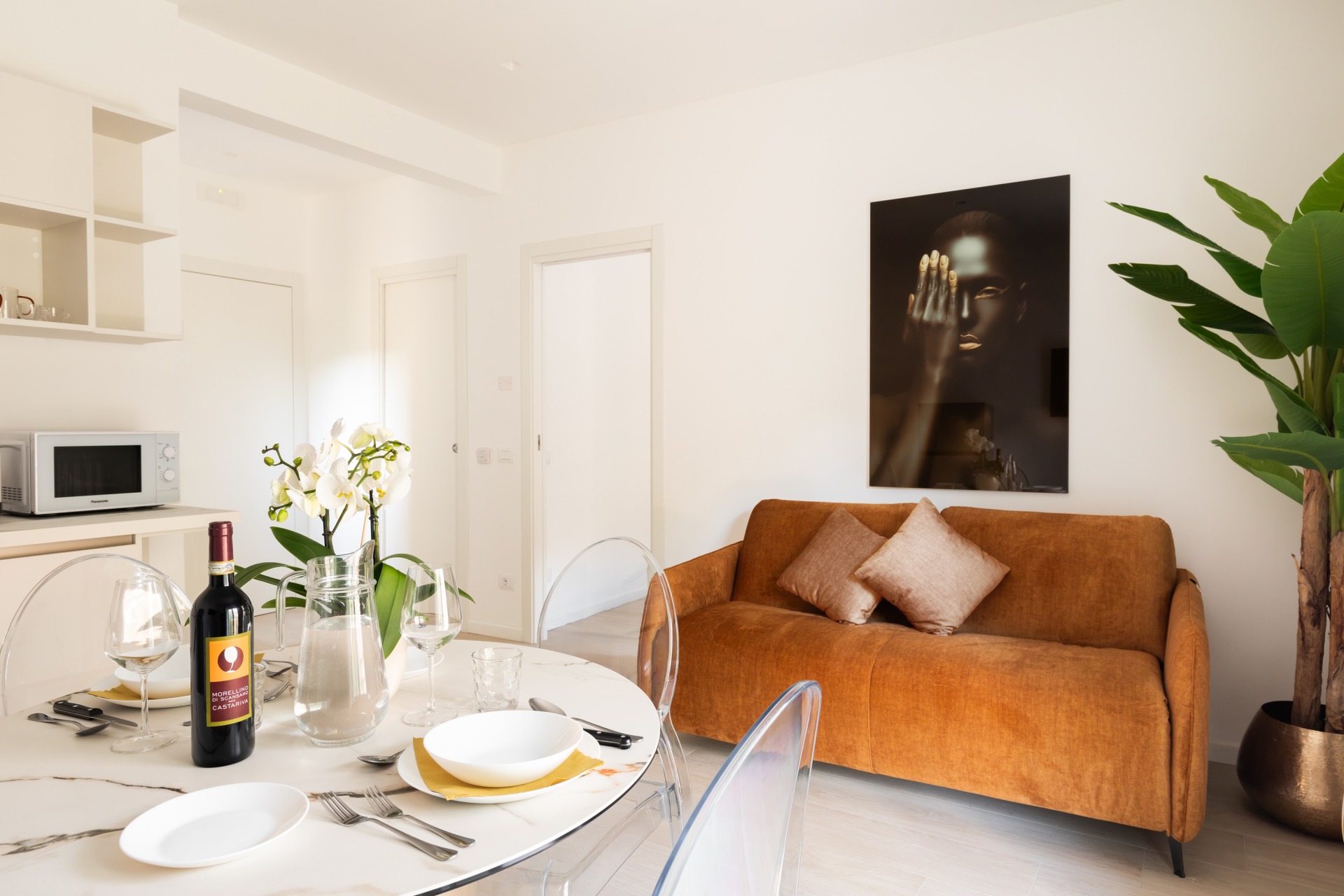 The Gold Apartment is synonymous with luxury and sophistication, featuring designer furnishings and elegant atmospheres. The living area, complete with a fully equipped kitchen and sofa bed, blends seamlessly with the double bedroom, offering both space and comfort. The modern, fully equipped bathroom is designed to provide a true sense of well-being. A private balcony makes the apartment even more special, offering moments of relaxation just steps away from the center of Sorrento.