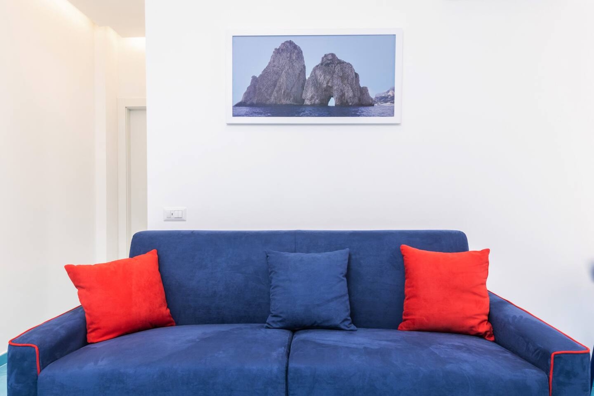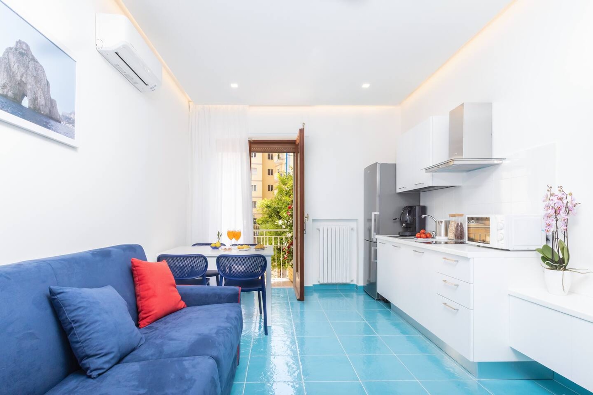 The Capri apartment, elegantly decorated with Vietri ceramics, is located in the very heart of Sorrento and features a lovely private balcony overlooking the garden. The apartment includes a bedroom with a double bed, a living room with a sofa bed and kitchenette, a private bathroom with a spacious shower, a flat-screen Smart TV, free Wi-Fi, hairdryer, kettle, espresso coffee machine, courtesy set, and air conditioning.