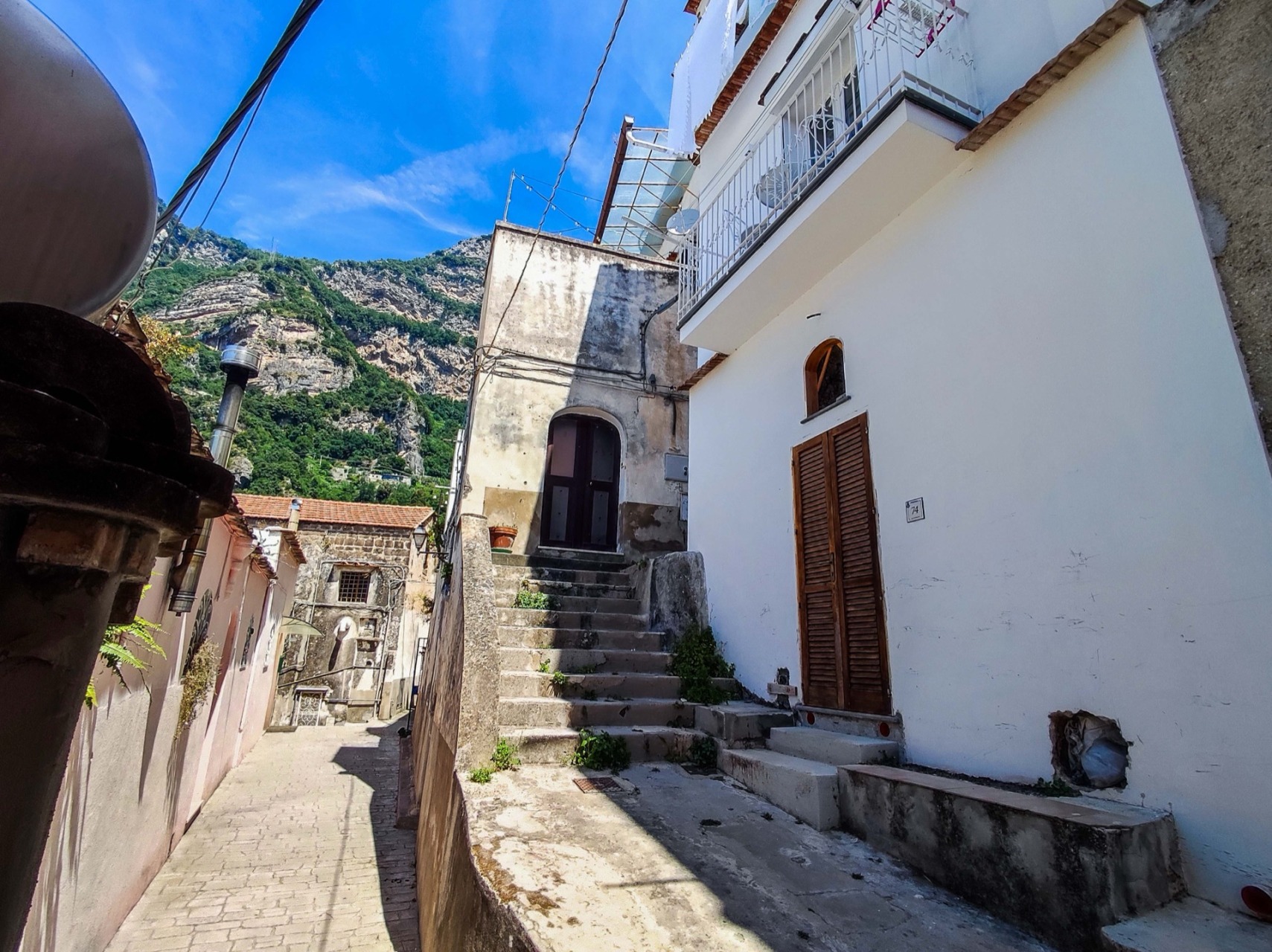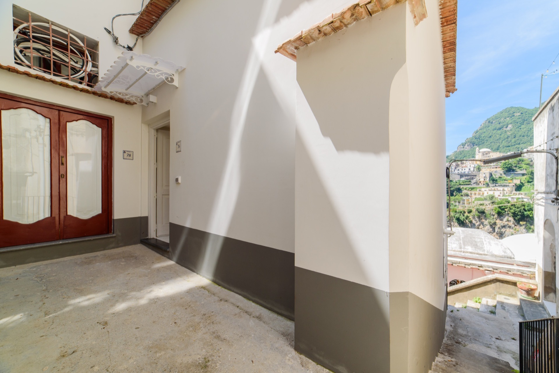 The property is set in a picturesque neighborhood characterized by narrow streets and stone stairways and is accessible by climbing approximately 100 steps from the main road and/or from the SITA bus stop connecting Sorrento and Amalfi.