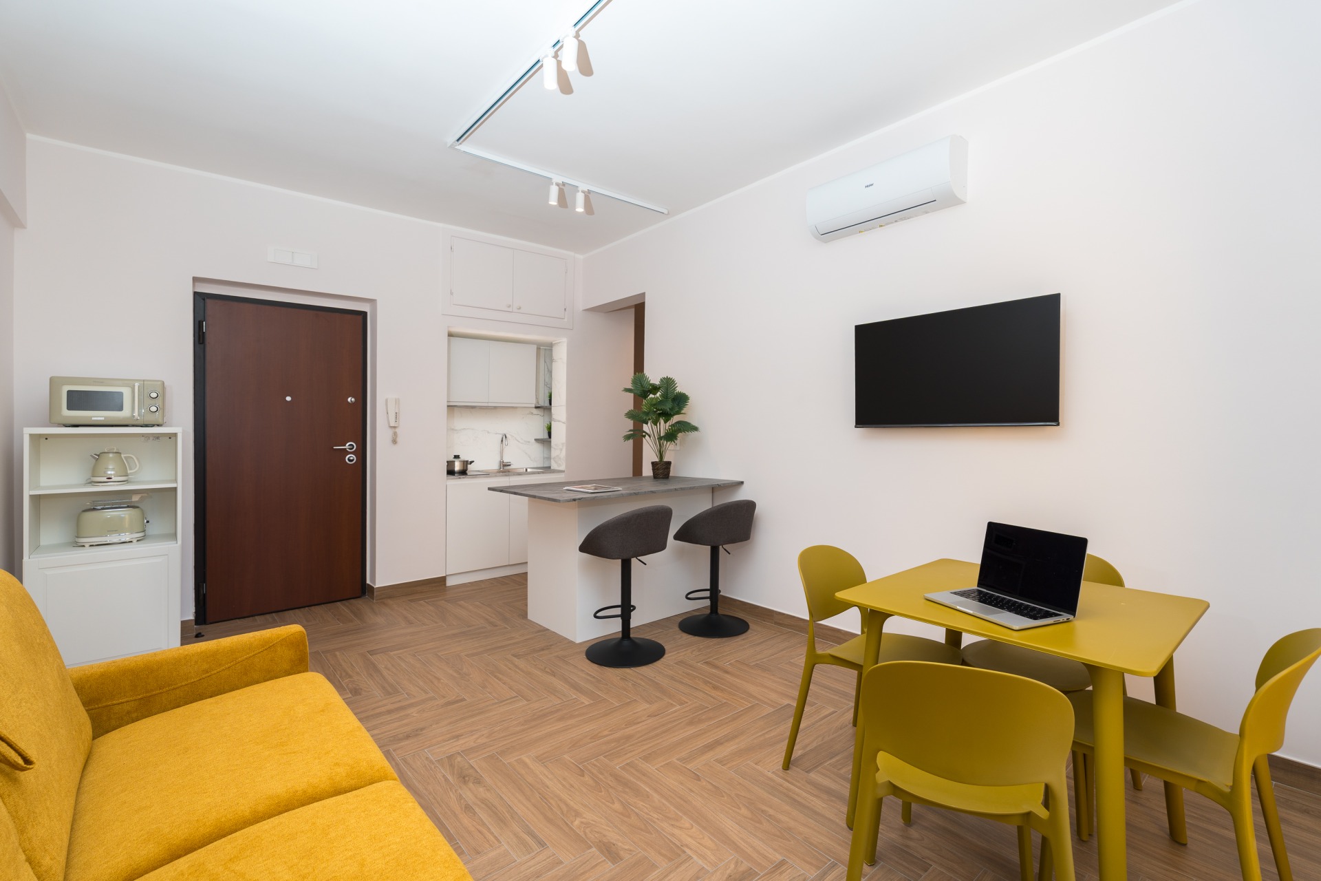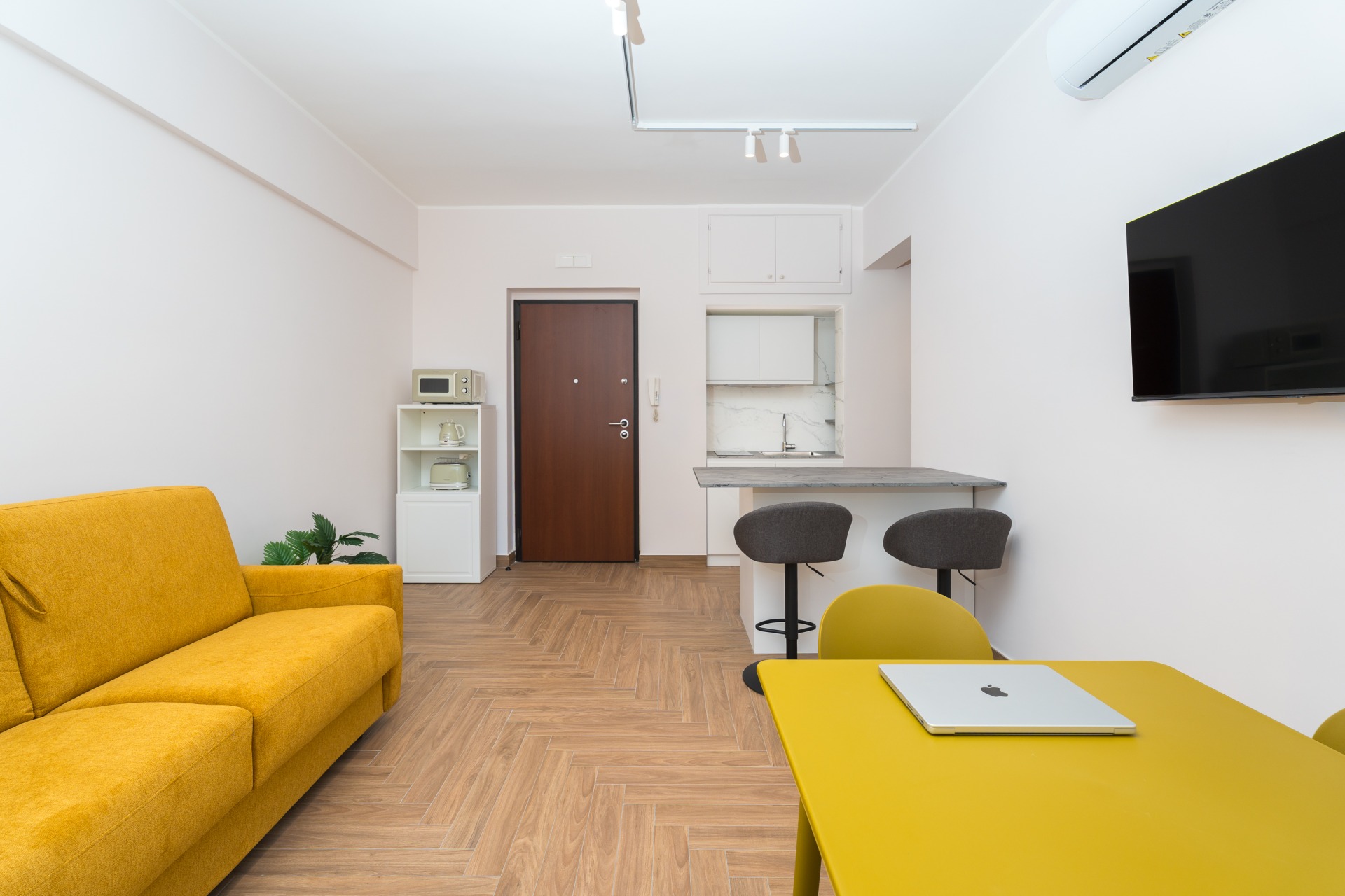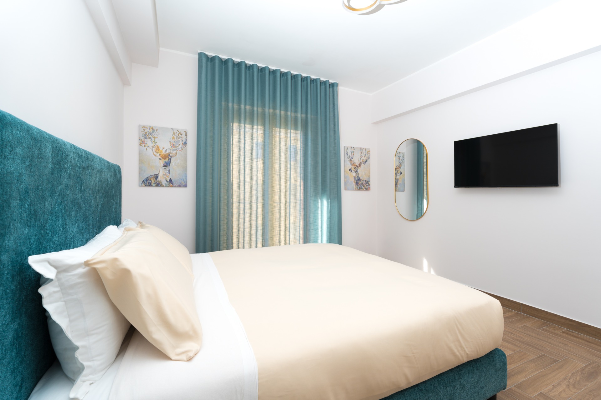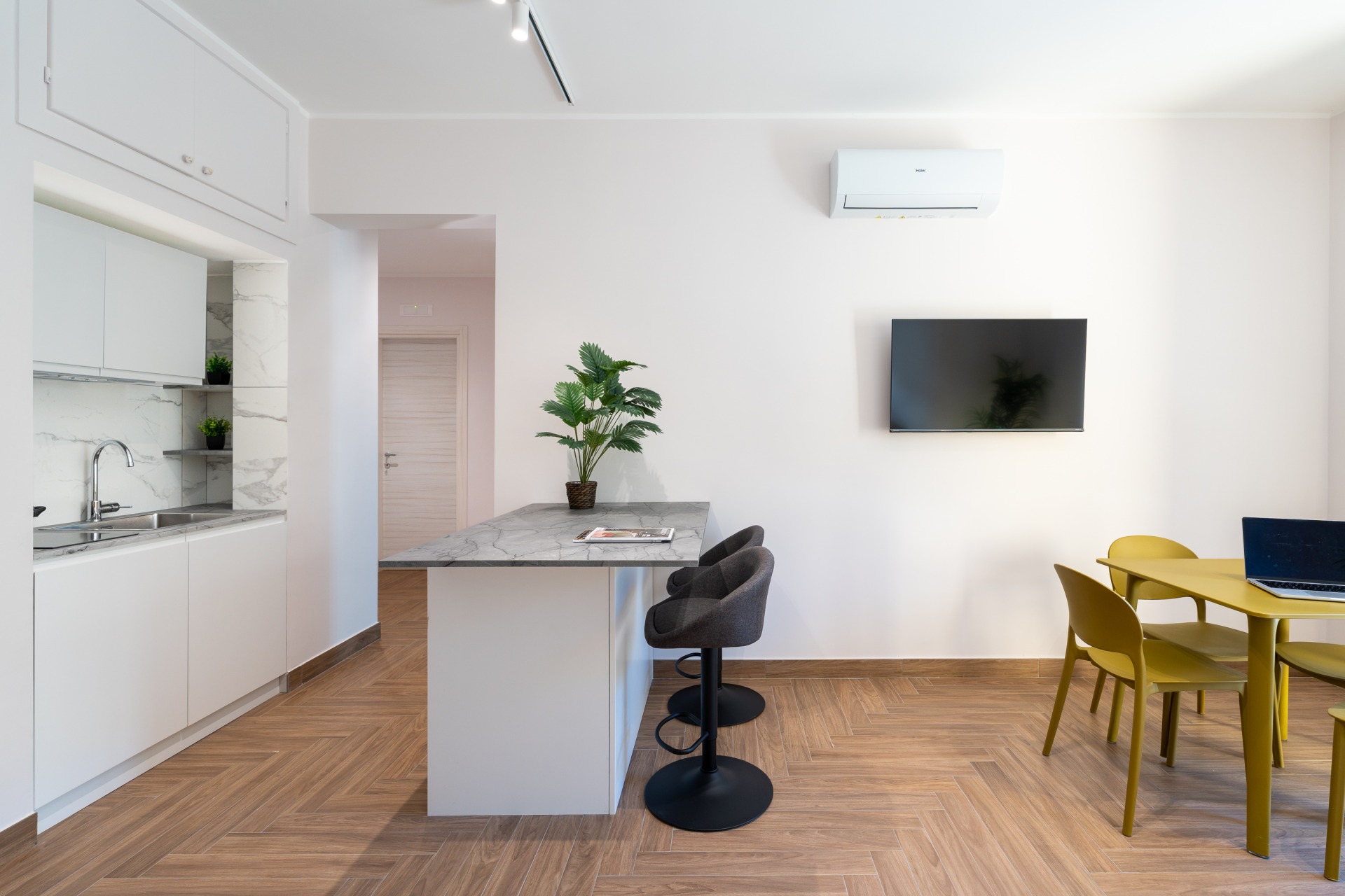 Modern apartment with a bright double bedroom, a spacious living area with a fully equipped kitchen, an elegant bathroom, and a terrace. Newly renovated interiors with designer furnishings, TV, air conditioning, and a washing machine. Perfect for couples, in a convenient location to experience Sorrento with comfort and style.