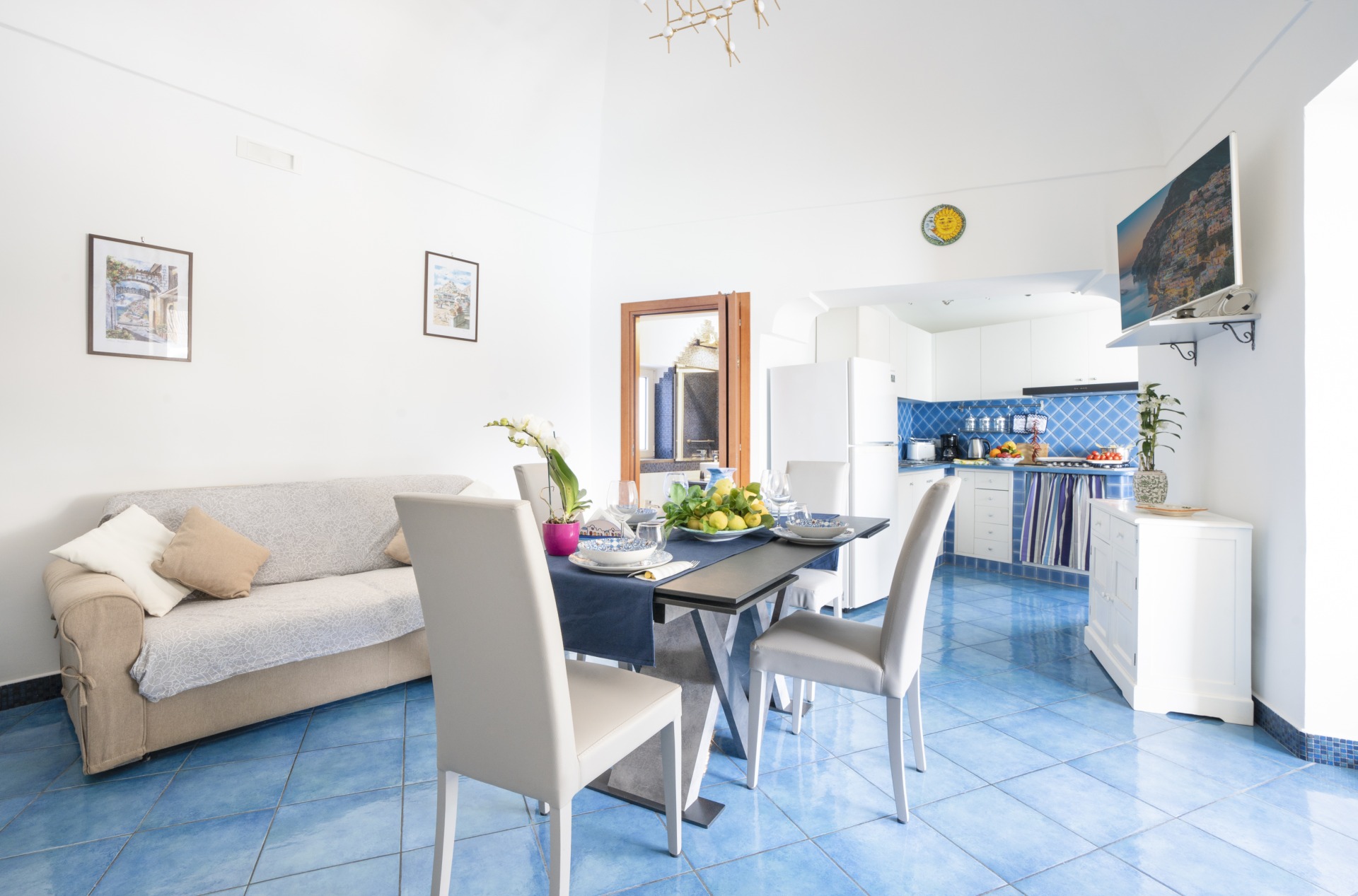 Set in the enchanting setting of Positano, this apartment offers a breathtaking sea view. It features an independent double bedroom and a second bedroom adjacent to the living room. Two bathrooms ensure comfort and privacy, while the living room includes a sofa and a dining table for shared moments. The terrace, furnished with a table, chairs, and a bench, is the perfect spot to enjoy the sea breeze and the spectacular sunrises and sunsets of the Amalfi Coast.