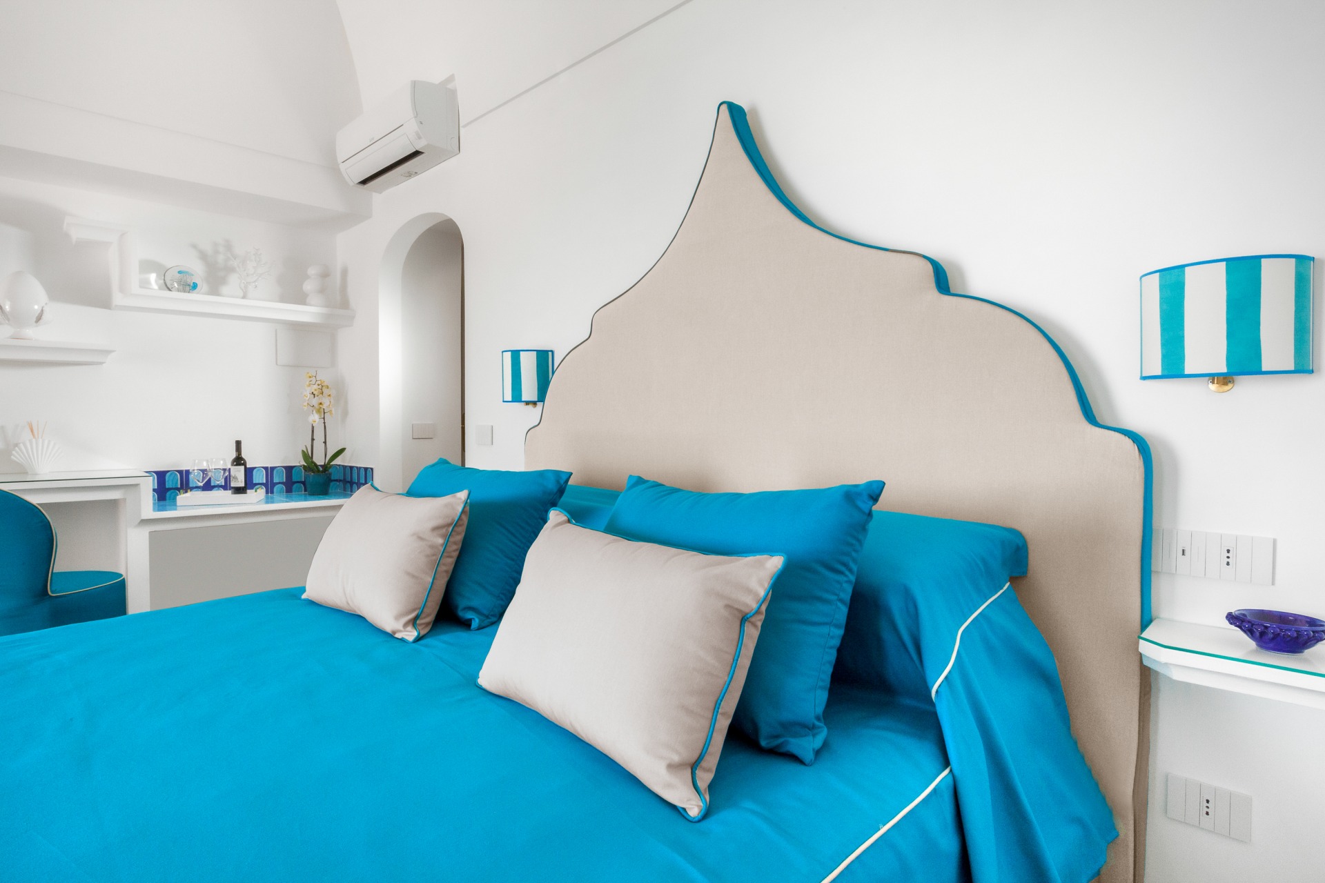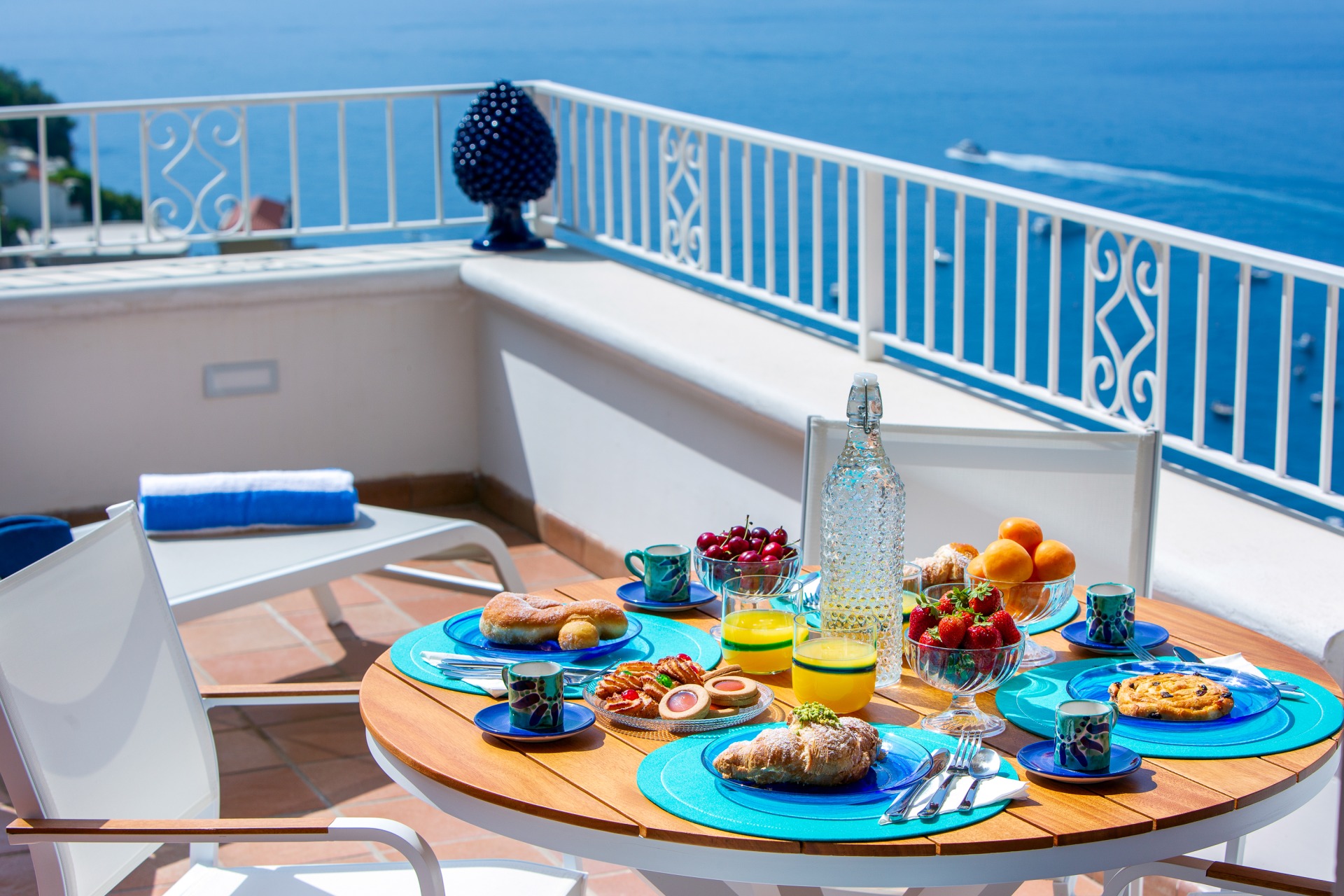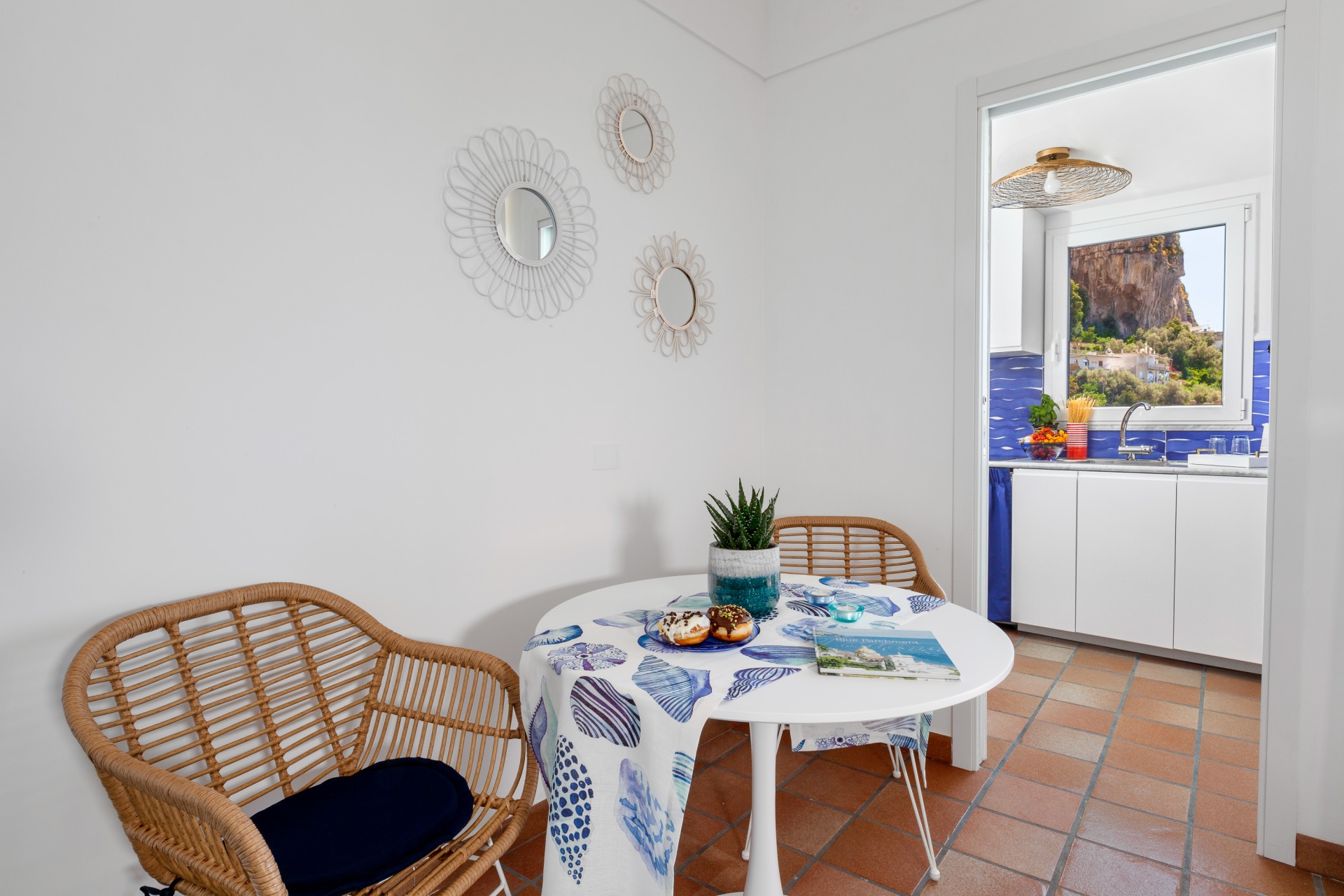 The highlight of the property is the sea-view terrace, furnished with a private jacuzzi, sun loungers, and a dining area—perfect for relaxing moments and romantic dinners.
