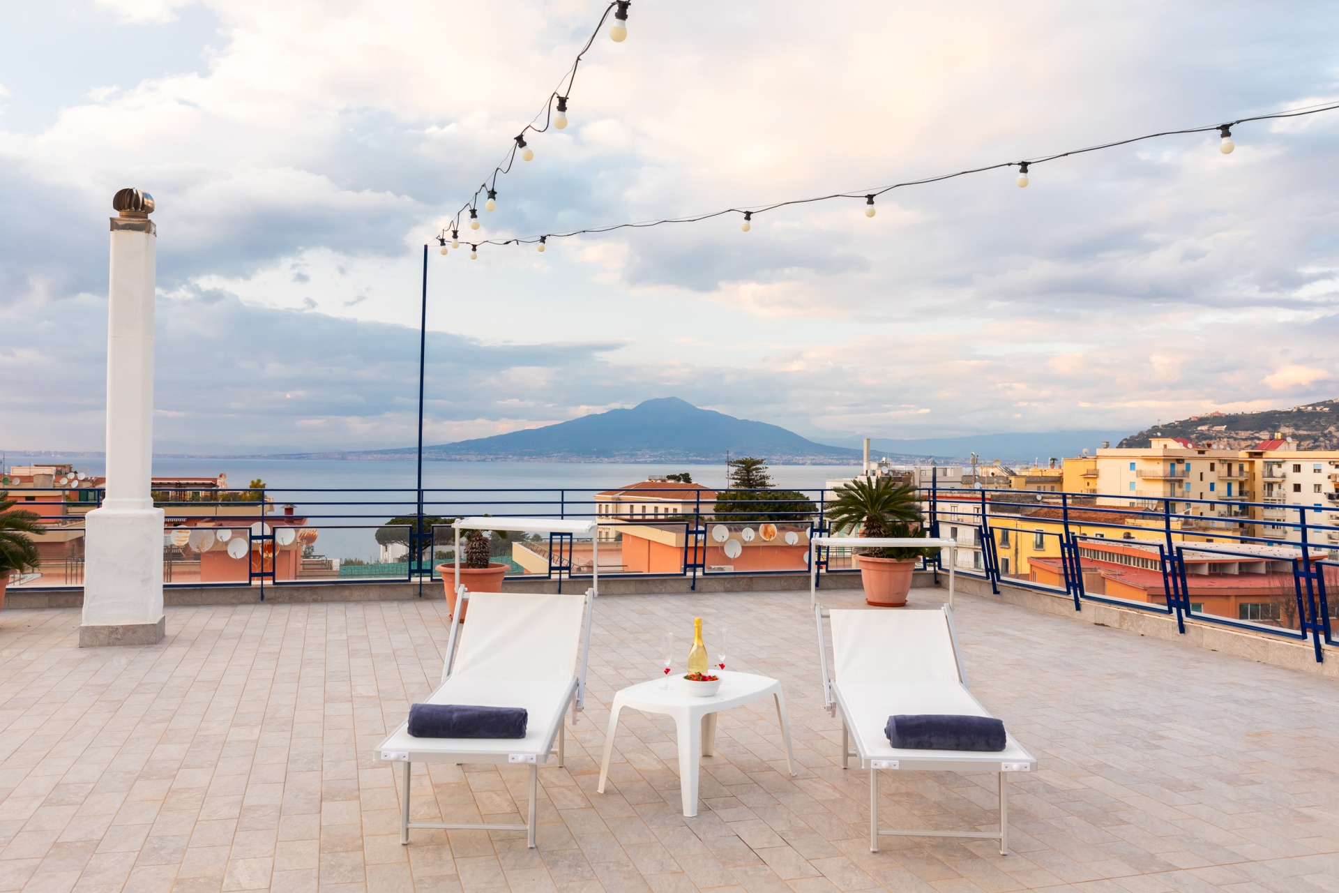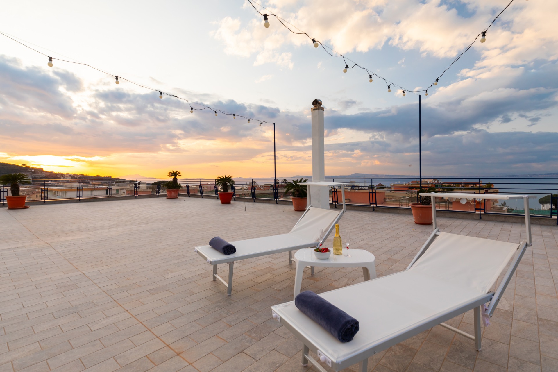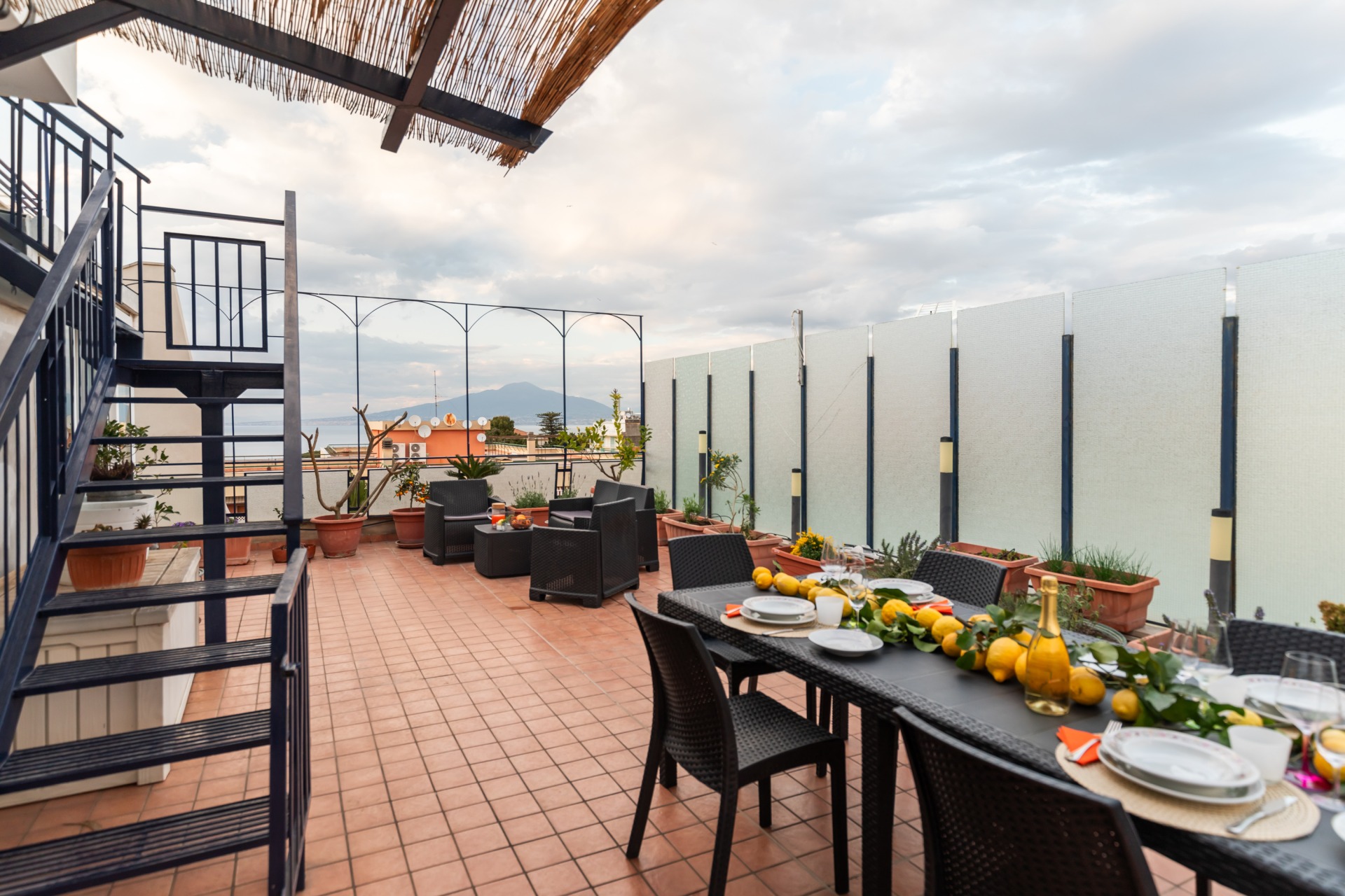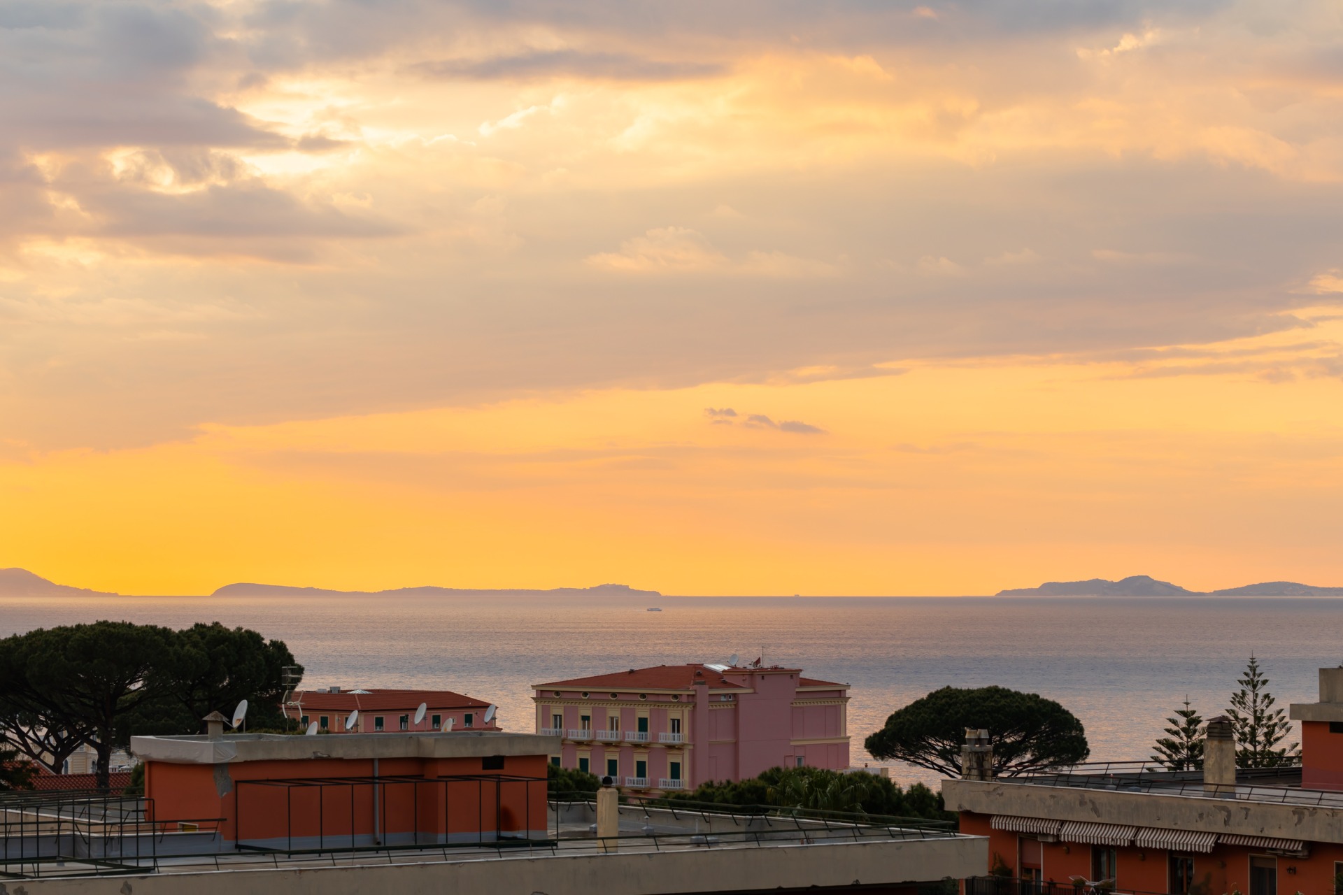 Welcome to this elegant and bright penthouse, an oasis of relaxation with breathtaking views of the sea and Mount Vesuvius. Perfectly located, this modern and refined space is ideal for a romantic getaway, a family vacation, or a business stay in total comfort. The furnished patio with lounge area and dining space invites you to unwind. Inside, a spacious open-plan living area with a fully equipped kitchen, a living room with a sofa bed, a double bedroom, and a modern bathroom offer the utmost comfort. Located on the 5th floor, it is easily accessible by elevator.