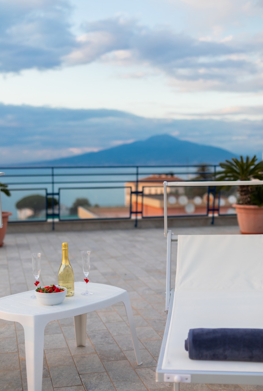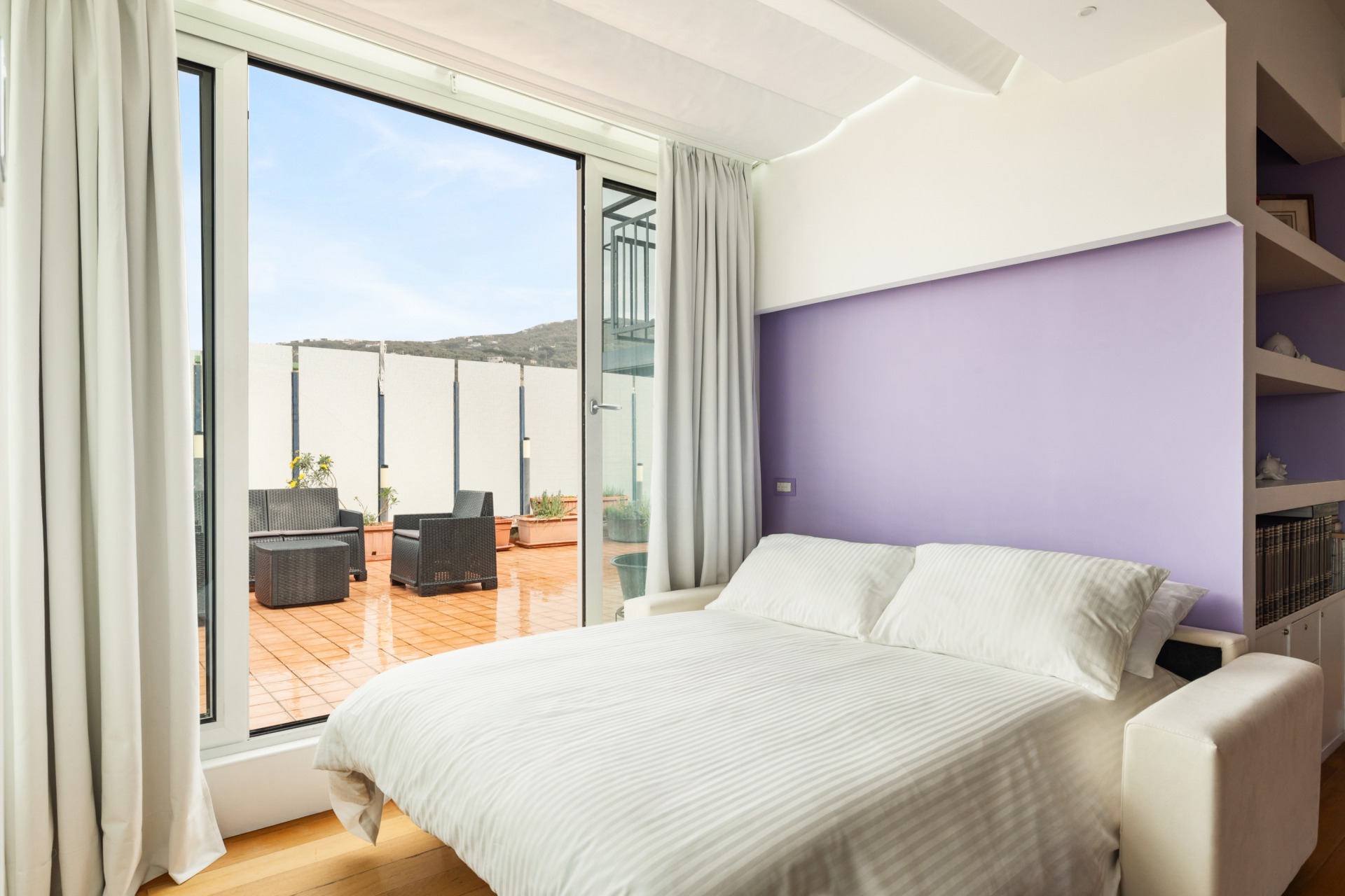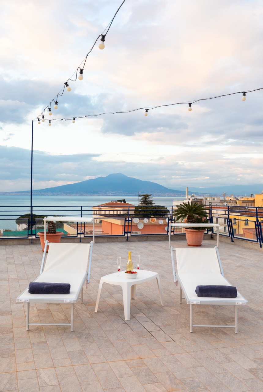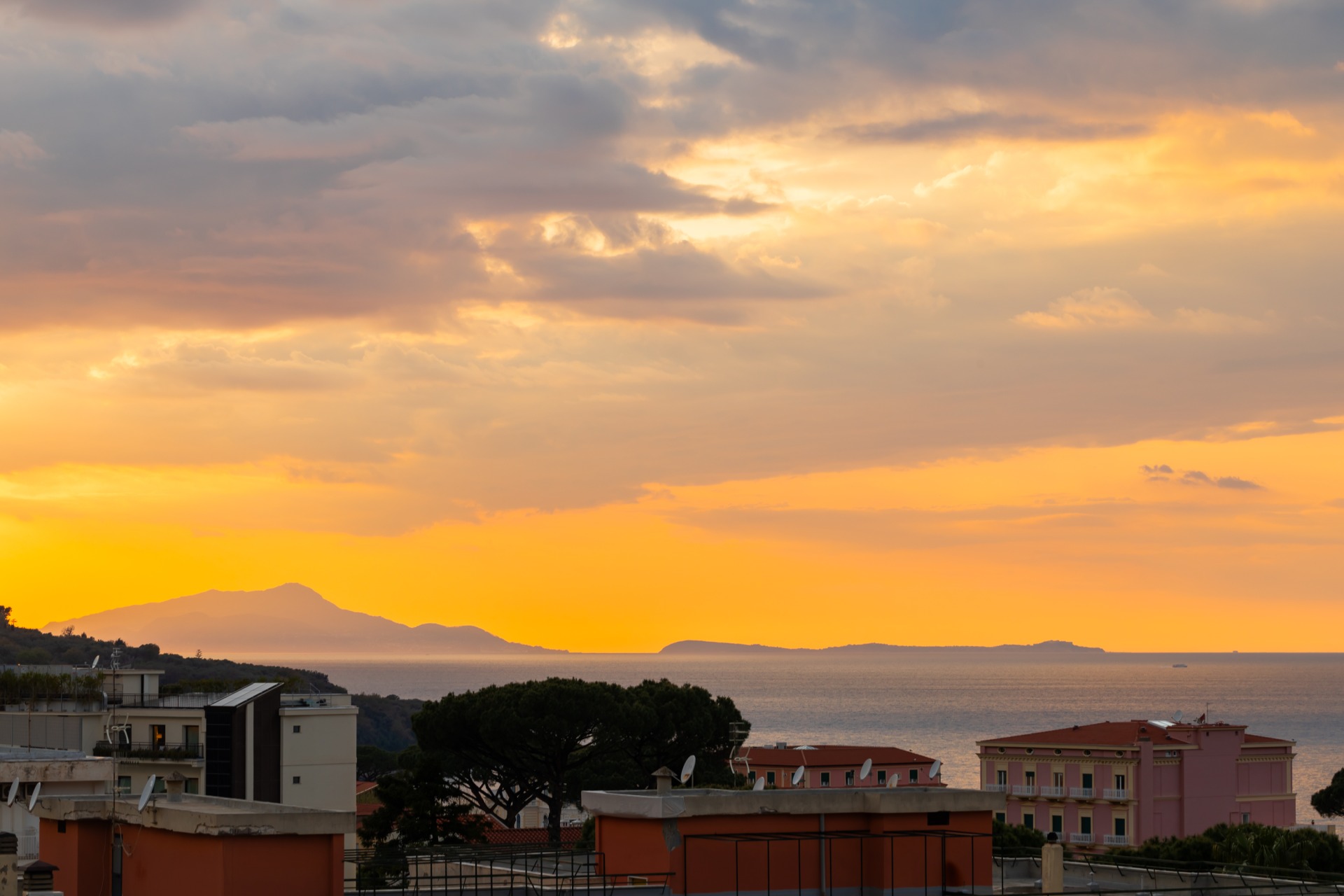 Welcome to this elegant and bright penthouse, an oasis of relaxation with breathtaking views of the sea and Mount Vesuvius. Perfectly located, this modern and refined space is ideal for a romantic getaway, a family vacation, or a business stay in total comfort. The furnished patio with lounge area and dining space invites you to unwind. Inside, a spacious open-plan living area with a fully equipped kitchen, a living room with a sofa bed, a double bedroom, and a modern bathroom offer the utmost comfort. Located on the 5th floor, it is easily accessible by elevator.