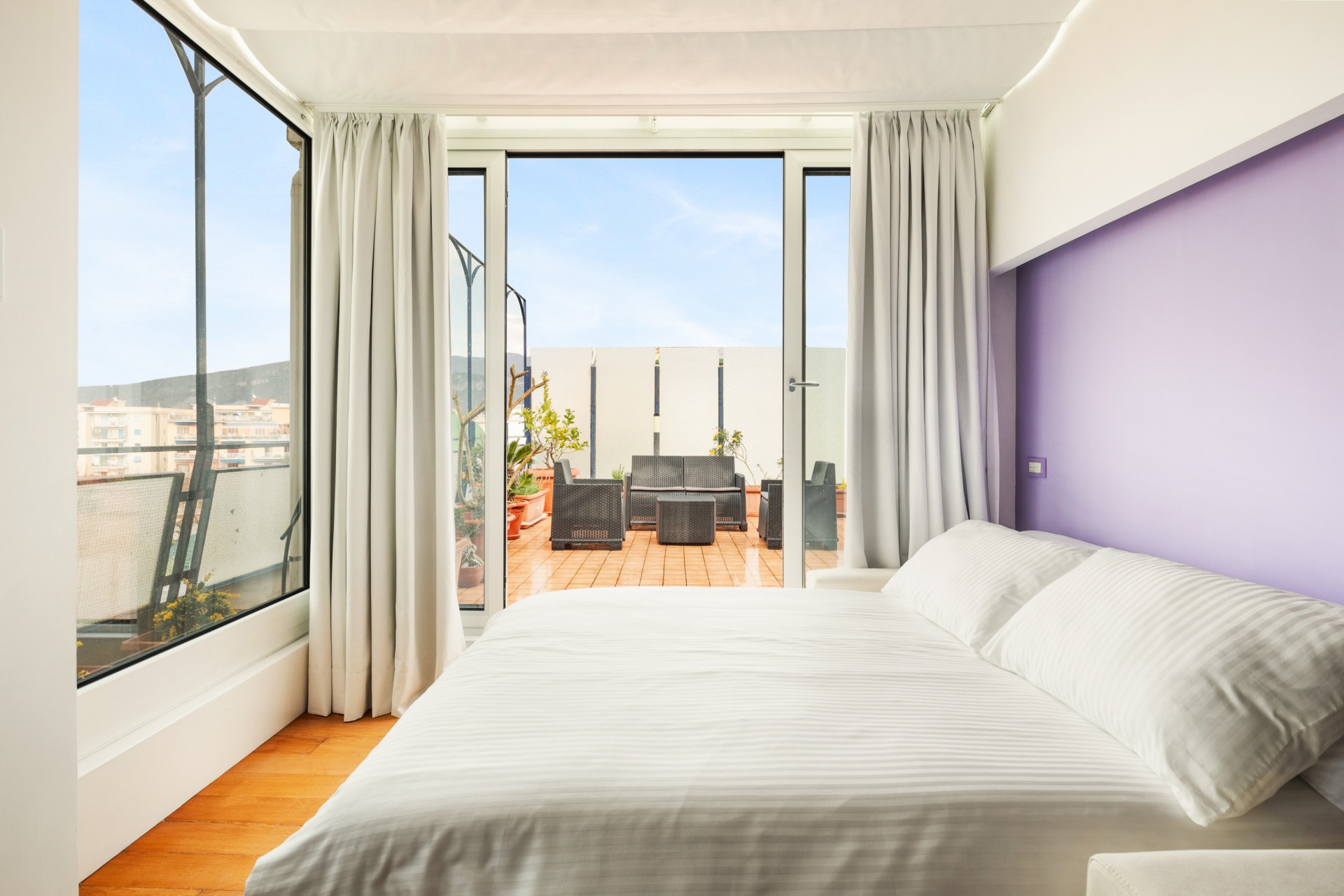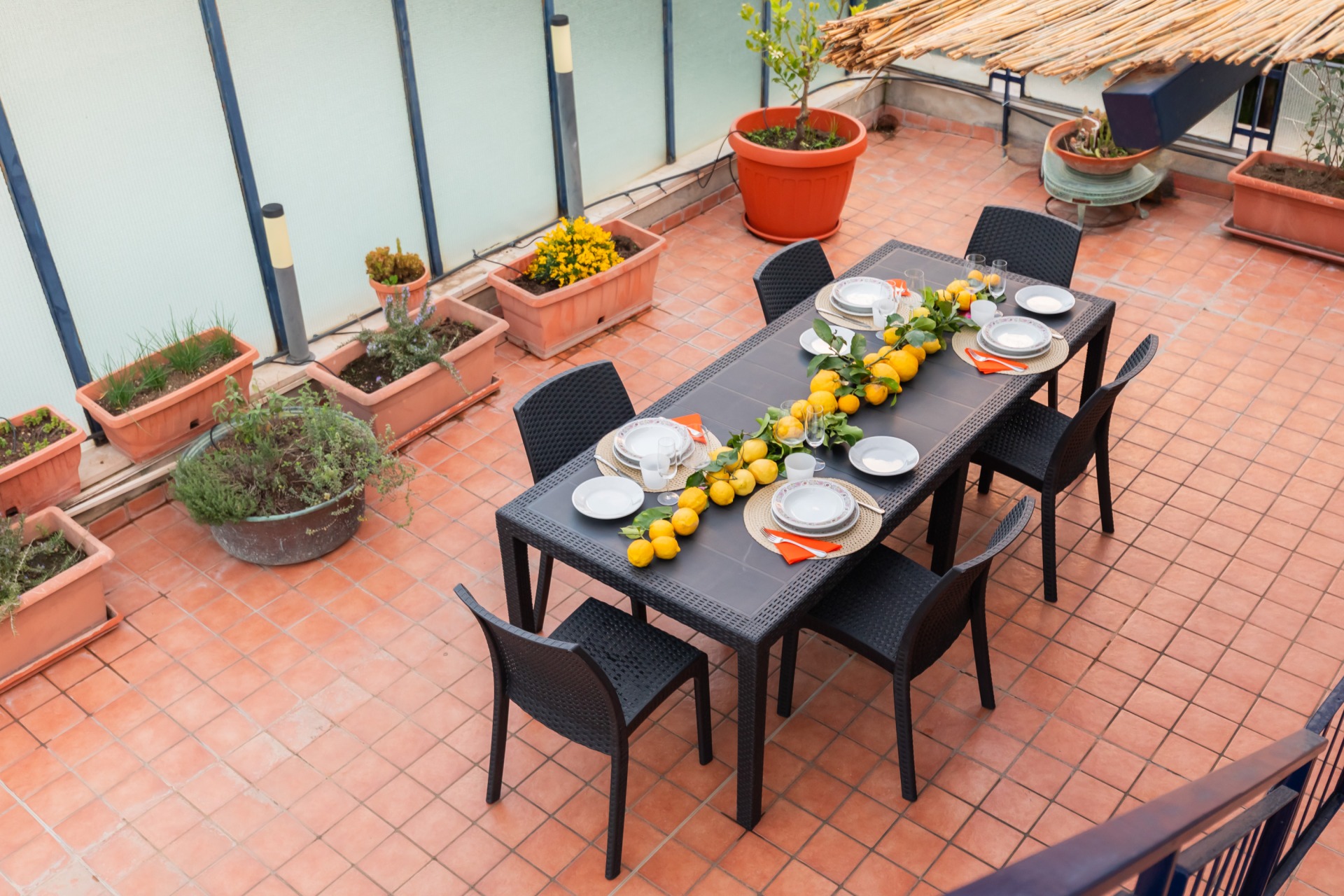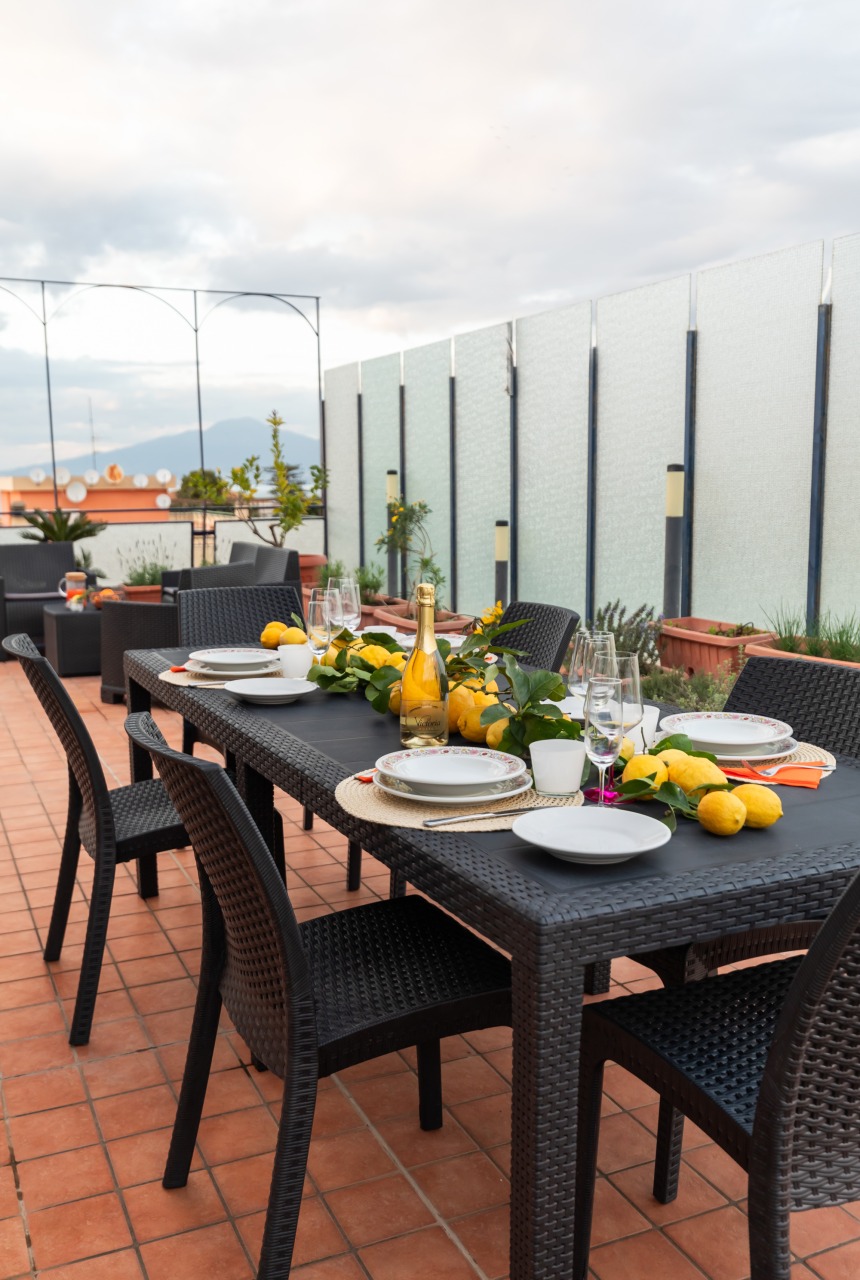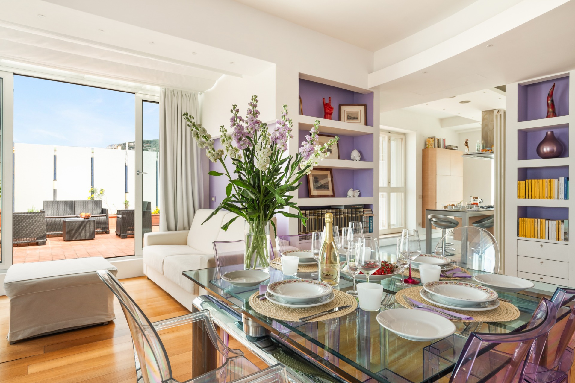 Welcome to this elegant and bright penthouse, an oasis of relaxation with breathtaking views of the sea and Mount Vesuvius. Perfectly located, this modern and refined space is ideal for a romantic getaway, a family vacation, or a business stay in total comfort. The furnished patio with lounge area and dining space invites you to unwind. Inside, a spacious open-plan living area with a fully equipped kitchen, a living room with a sofa bed, a double bedroom, and a modern bathroom offer the utmost comfort. Located on the 5th floor, it is easily accessible by elevator.