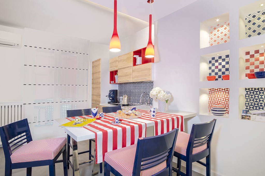 The apartment includes four bedrooms finely furnished with particular attention to detail, a kitchen with dining area and two bathrooms.