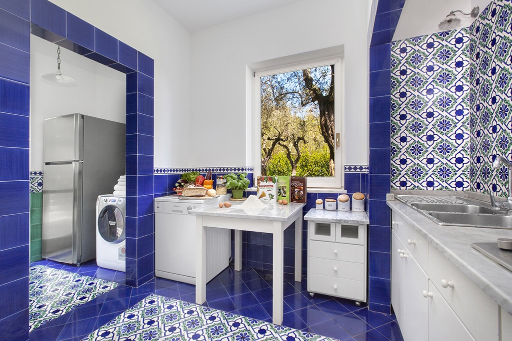 The villa’s well-appointed kitchen is a culinary enthusiast’s dream, featuring modern amenities such as a stovetop, refrigerator, dishwasher, and ample kitchenware, perfect for preparing delicious meals with ease.