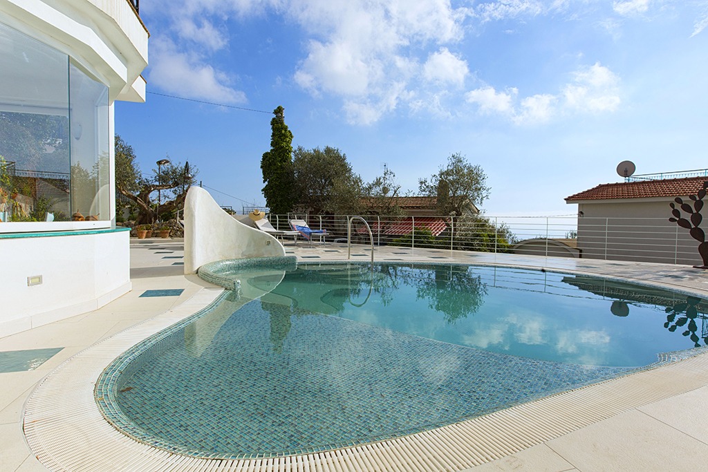 Welcome to Villa My Heart, nestled in the breathtaking Massa Lubrense. This stunning retreat offers spacious interiors including 4 bedrooms, 3 bathrooms, a generous kitchen, and a comfortable living area. However, the true gem lies in its terrace boasting a sparkling pool and sun-drenched solarium, all framing an unparalleled panoramic view of the sea. Immerse yourself in luxury and tranquility as you indulge in the beauty of coastal living at Villa My Heart.