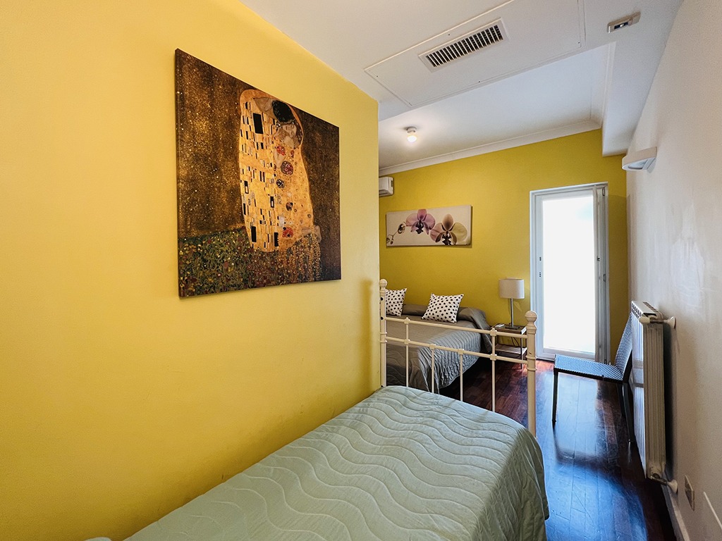 Welcome to our charming two-bedroom apartment, featuring a delightful blend of comfort and style. This inviting space boasts two bedrooms, each offering a unique sleeping arrangement. The first bedroom showcases a comfortable double bed and a single bed, accommodating a small family or a group of friends perfectly. The second bedroom features a cozy French bed, ideal for a couple seeking tranquility.