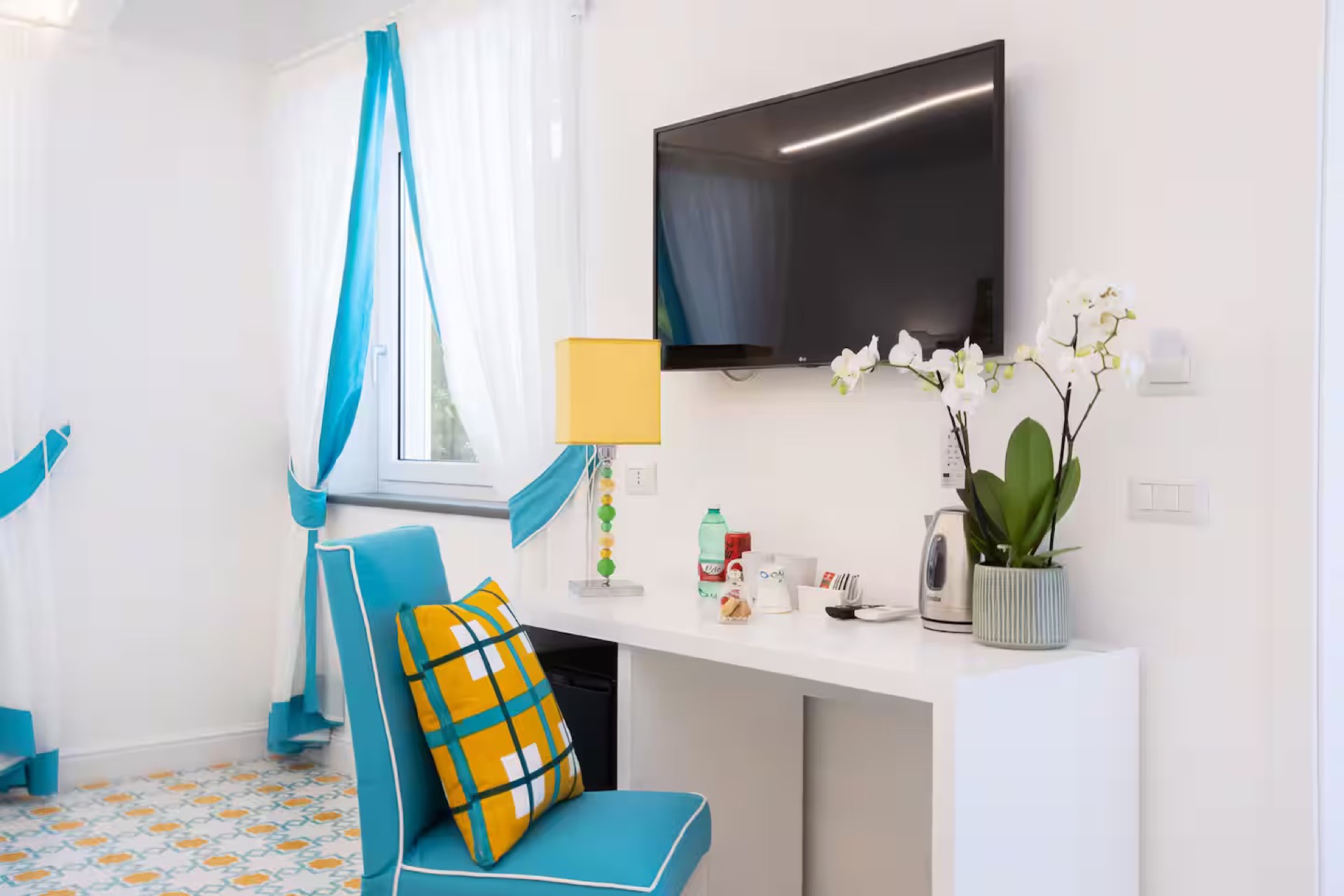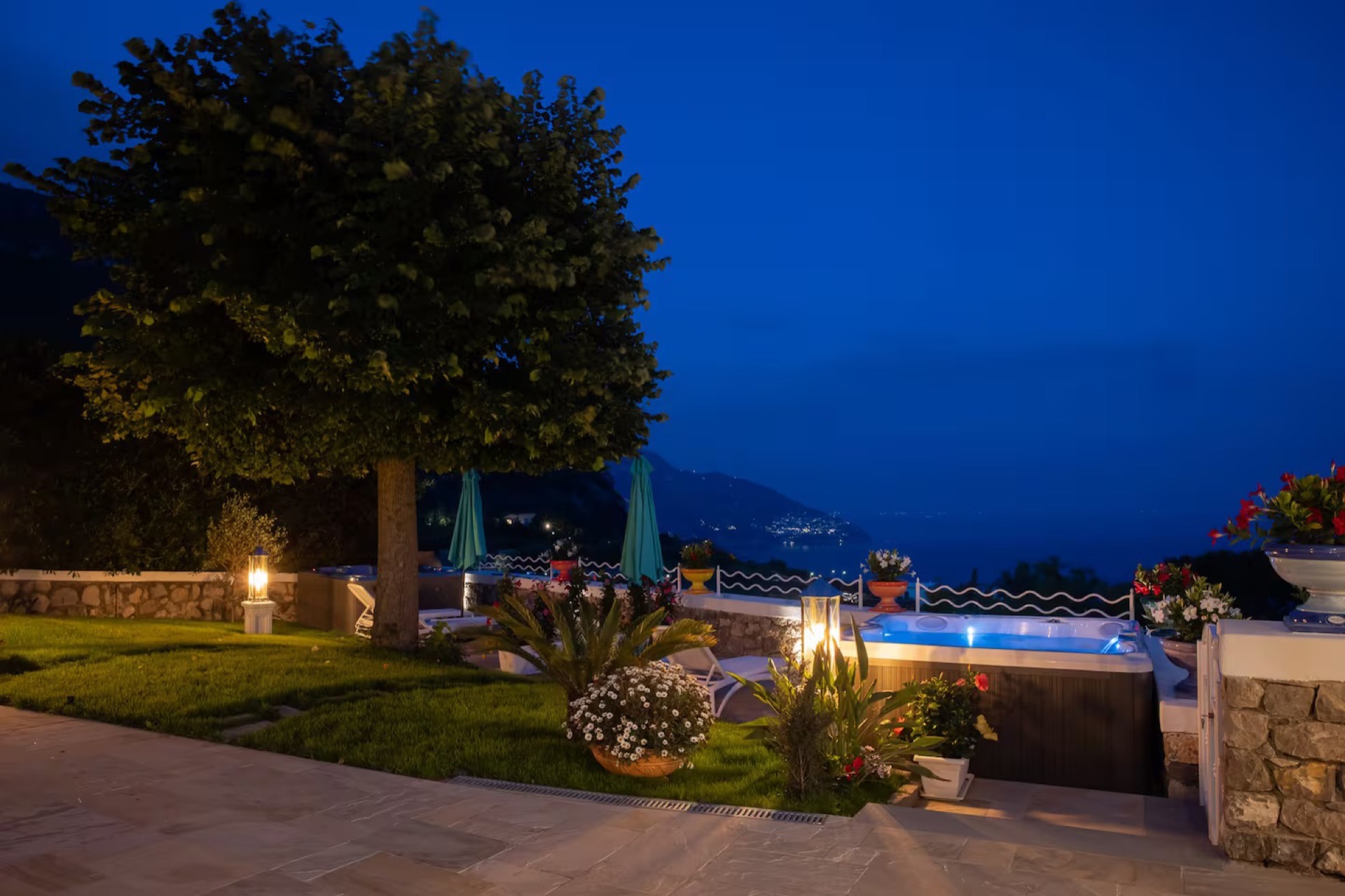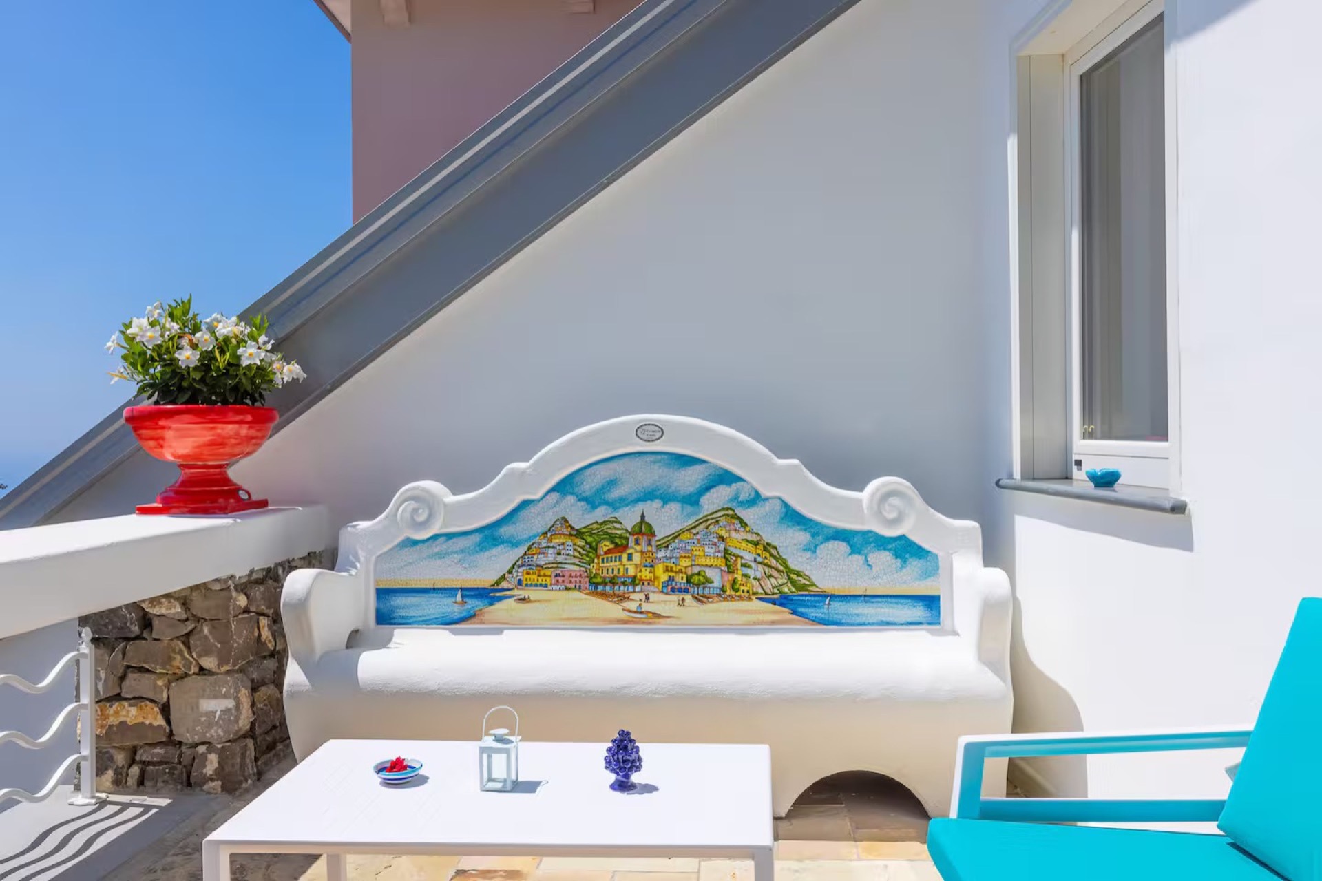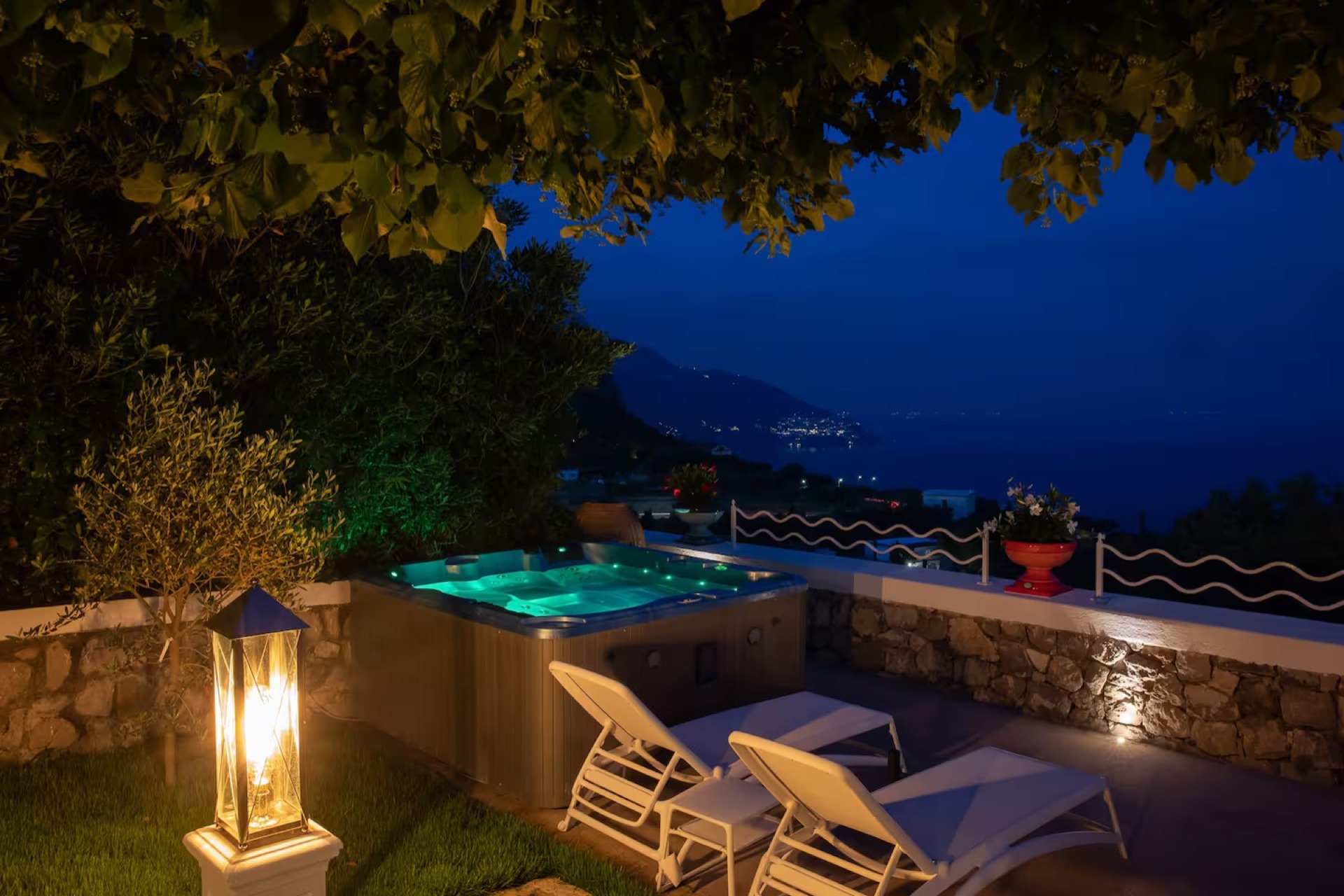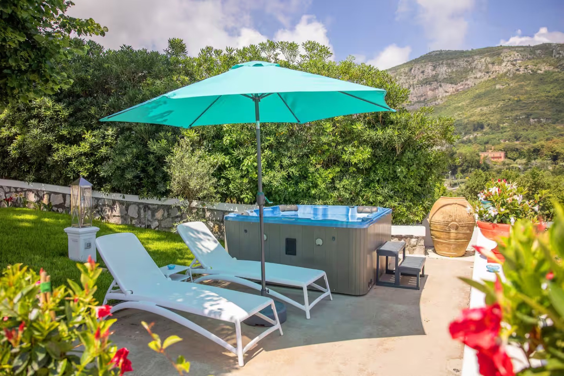 The elegant Positano and Capri Suites, decorated with Vietri ceramics and fine fabrics, provide bright and welcoming spaces, each equipped with a queen-size bed, single sofa bed, and a private heated jacuzzi with sun loungers and an outdoor dining area.
