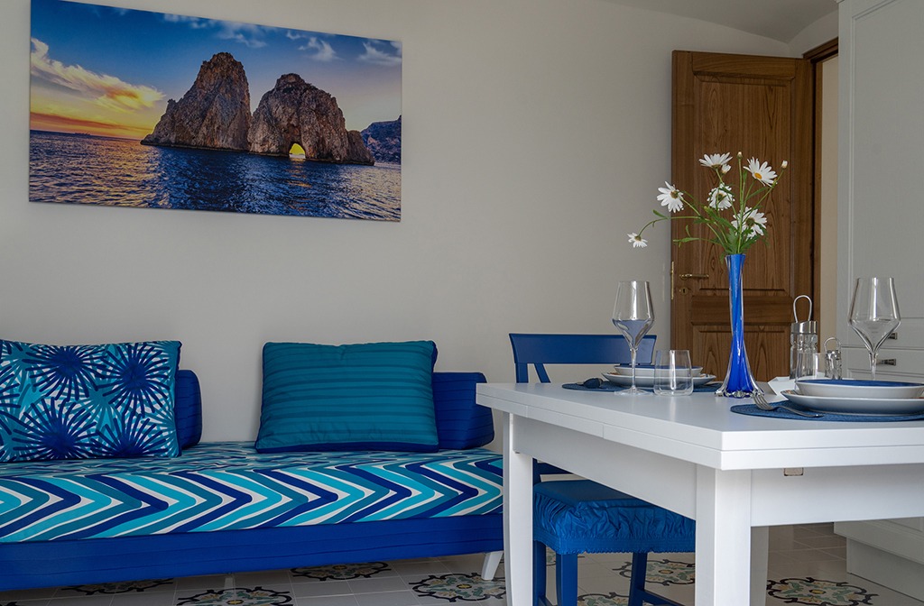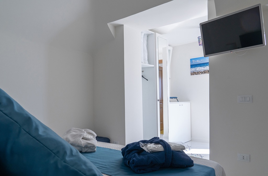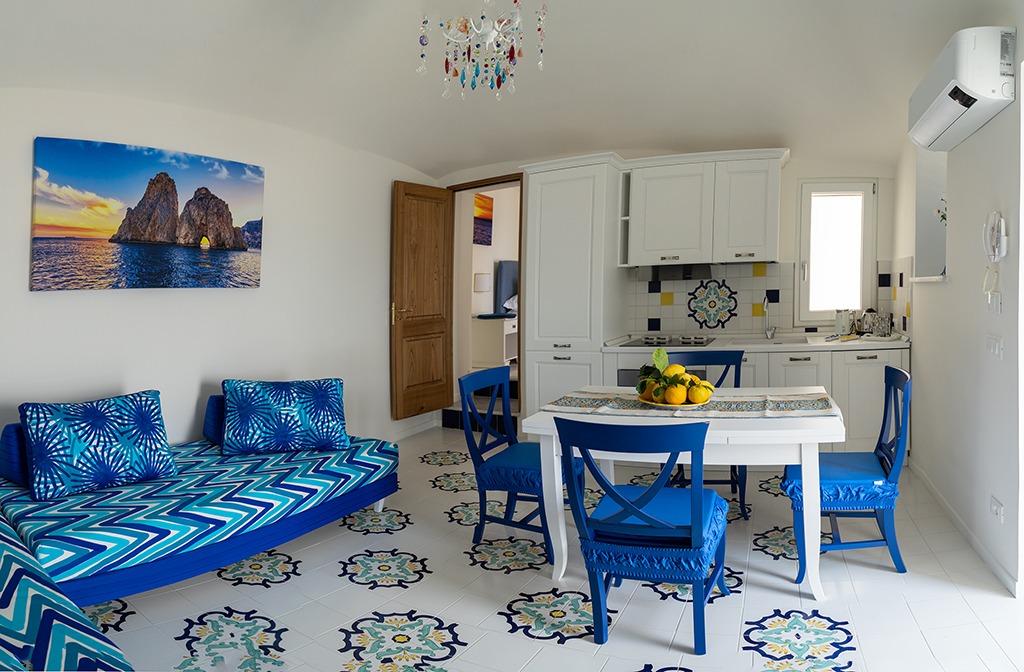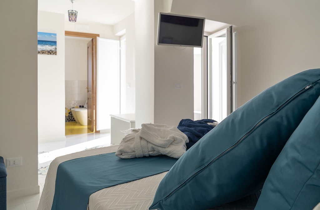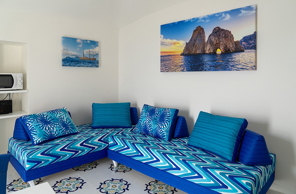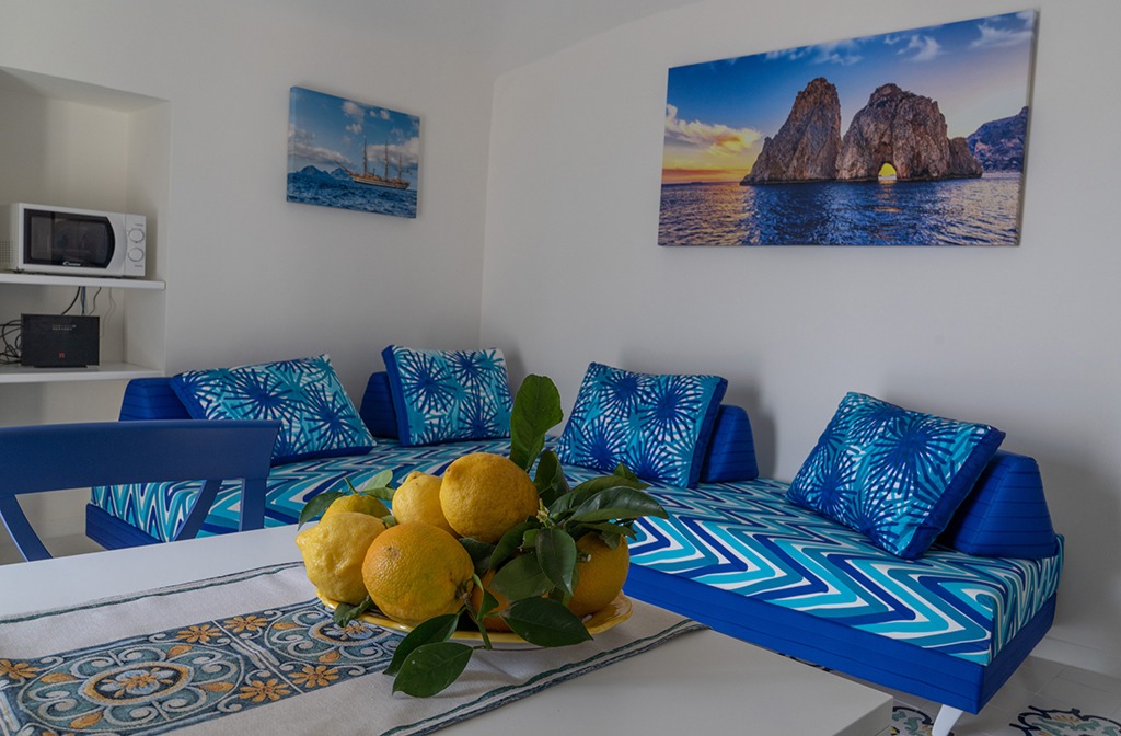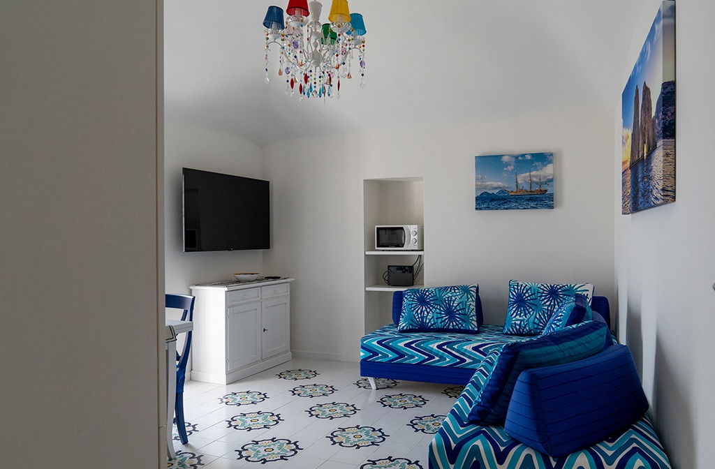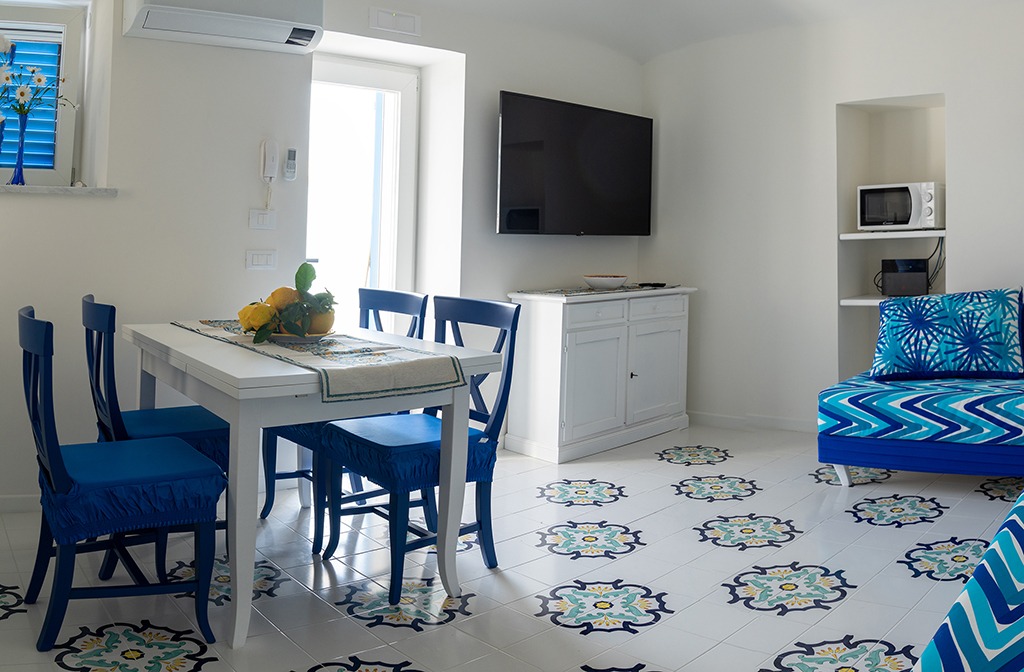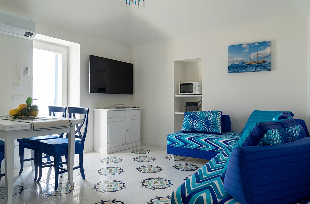 Welcome to our charming White House Giò apartment in Positano! This beautifully furnished coastal Italian-style retreat features one double bedroom, a bathroom, and a kitchen-living area with two single sofa beds. The highlight of the apartment is its incredible terrace, adorned with comfortable sofas and armchairs, providing a breathtaking view. It’s the perfect spot for sunbathing and enjoying the stunning scenery. The apartment also has free and unlimited WI-FI connection, TV, hairdryer.