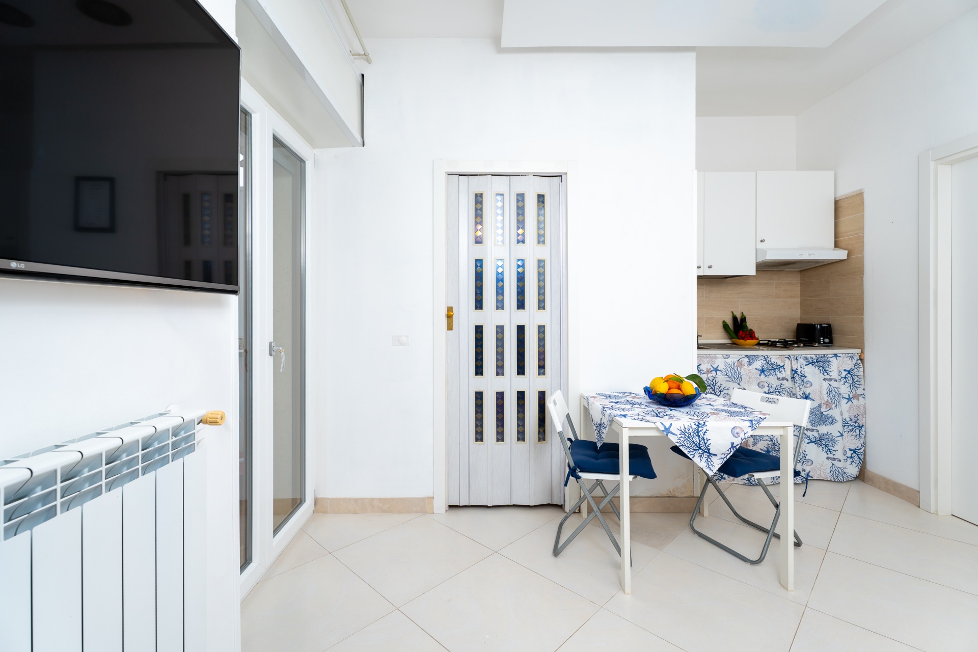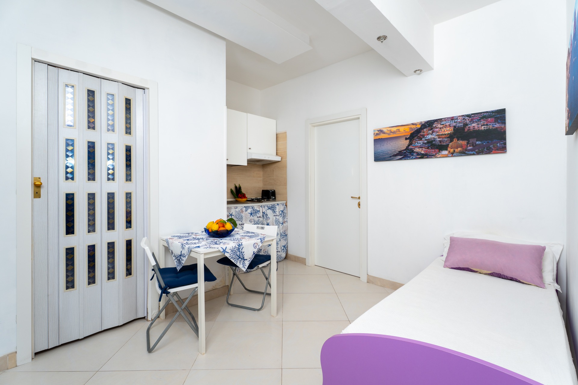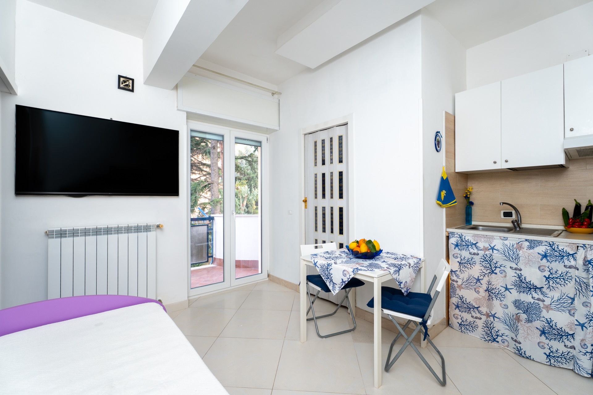 Accogliente open space nel cuore di Sorrento, a meno di 5 minuti a piedi da Piazza Tasso. Un unico ambiente luminoso con zona notte e soggiorno, angolo cucina, bagno e balcone. La soluzione ideale per chi vuole vivere Sorrento a piedi, tra mare, ristoranti e shopping, senza rinunciare al comfort e alla tranquillità.