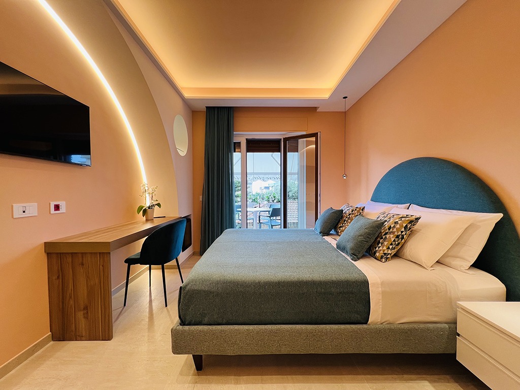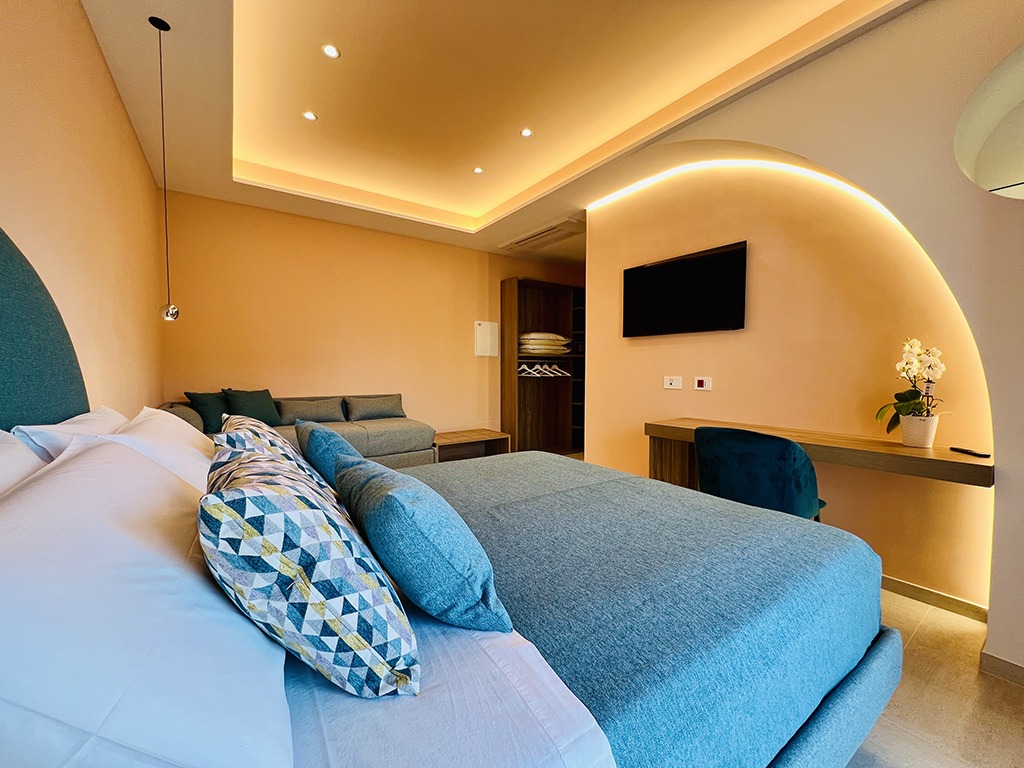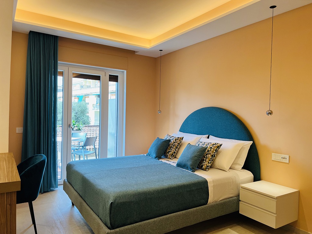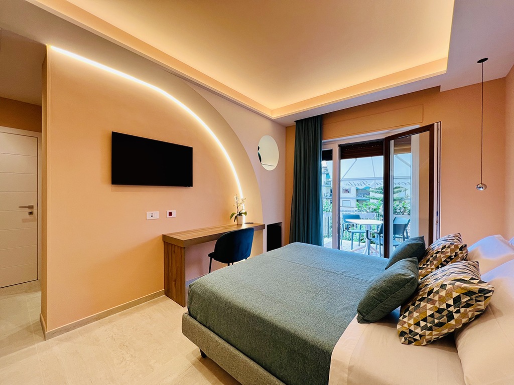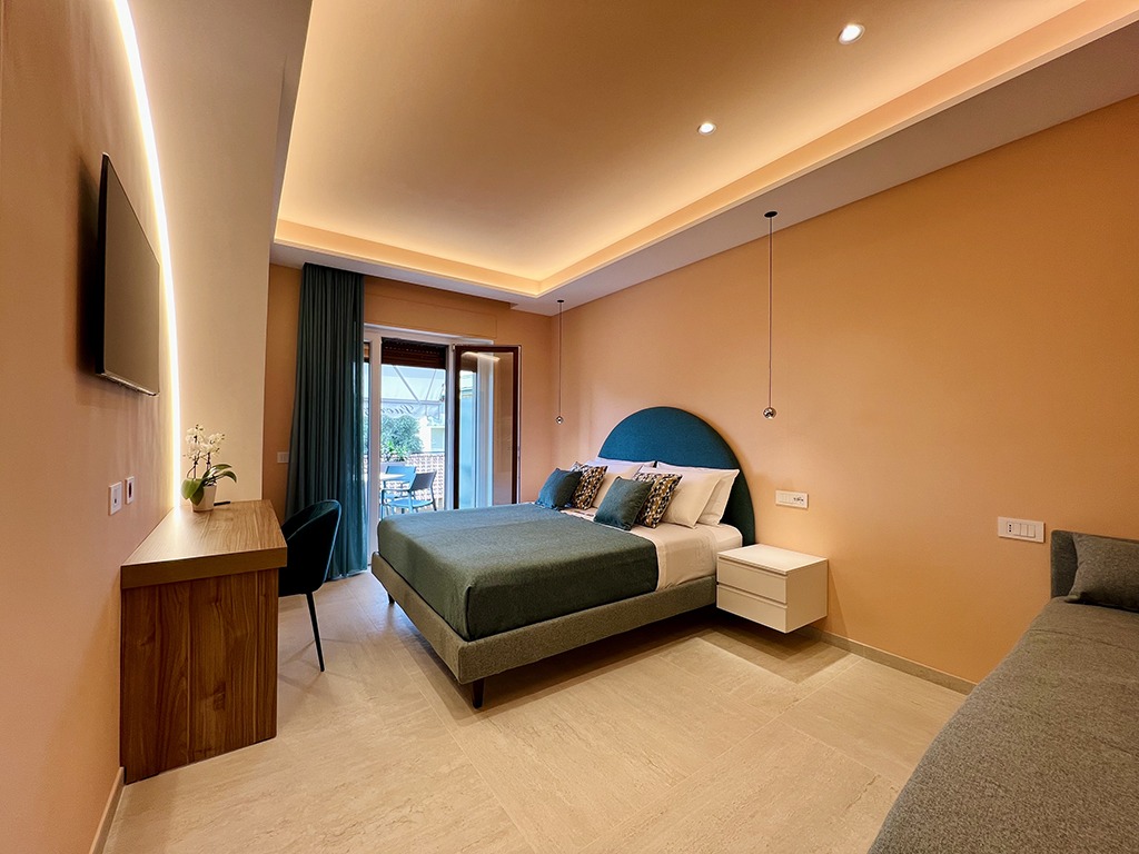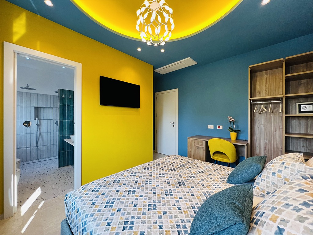 Lucrezia Suites è un affascinante B&B situato nel cuore di Sorrento, che offre due camere di nuova concezione, arredate con gusto e cura nei dettagli. La camera “Rosita” è una spaziosa matrimoniale dotata di divano letto, ideale per ospitare un ulteriore ospite, e vanta un delizioso balcone perfetto per i tuoi momenti di relax. La camera “Enzo” è caratterizzata da un design vivace e originale, con una palette di colori unica che dona un tocco di energia al tuo soggiorno.