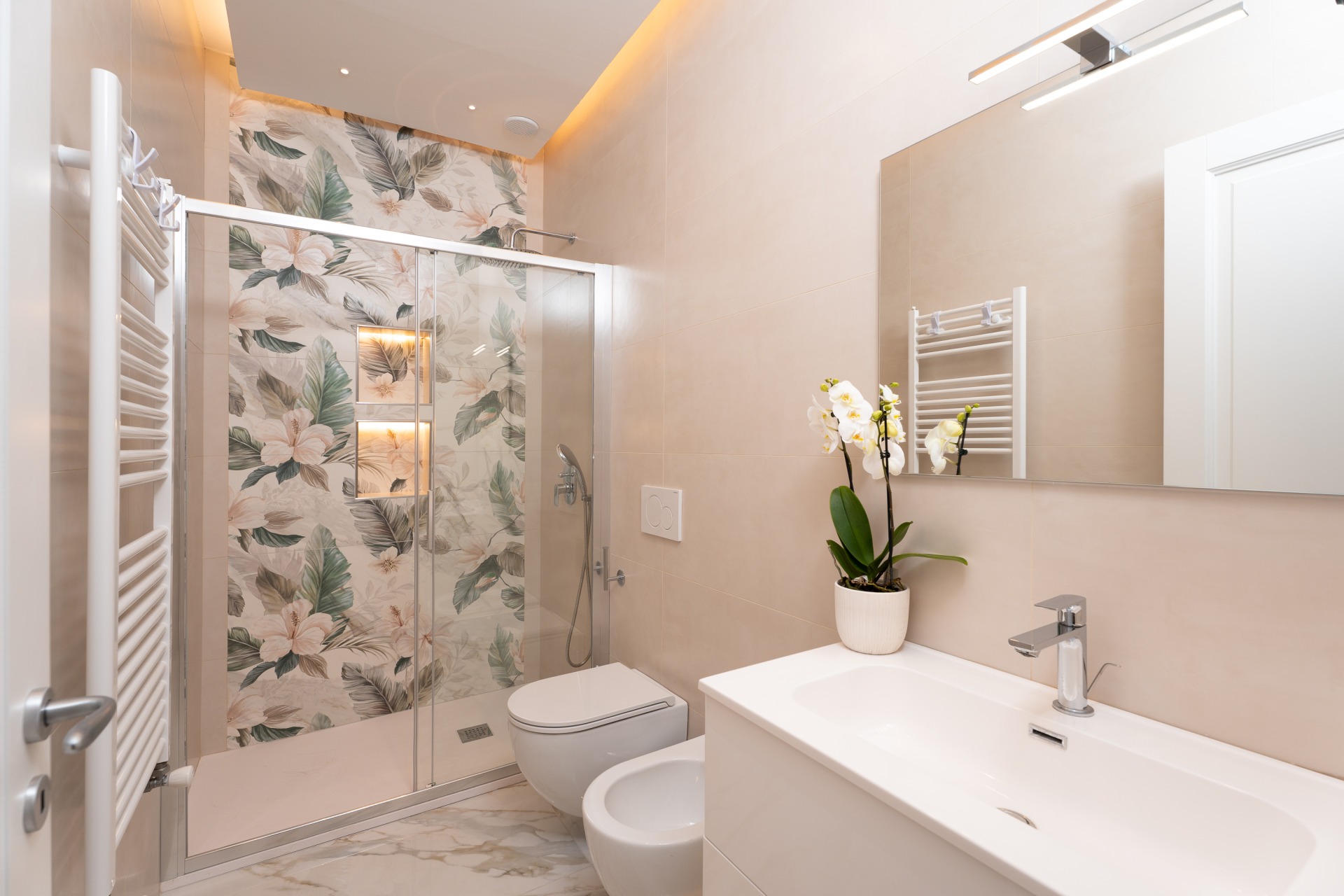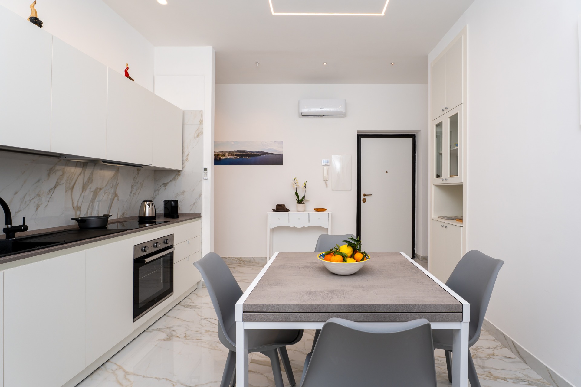 L’appartamento, arredato con gusto e attenzione ai dettagli, dispone di soggiorno con cucina completamente attrezzata, due camere da letto confortevoli e due bagni moderni, offrendo spazi ideali per famiglie o piccoli gruppi. Gli ambienti sono luminosi e pensati per garantire relax e funzionalità.