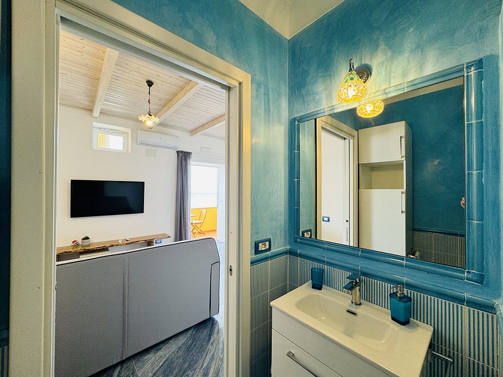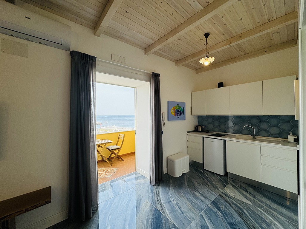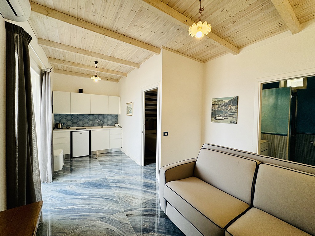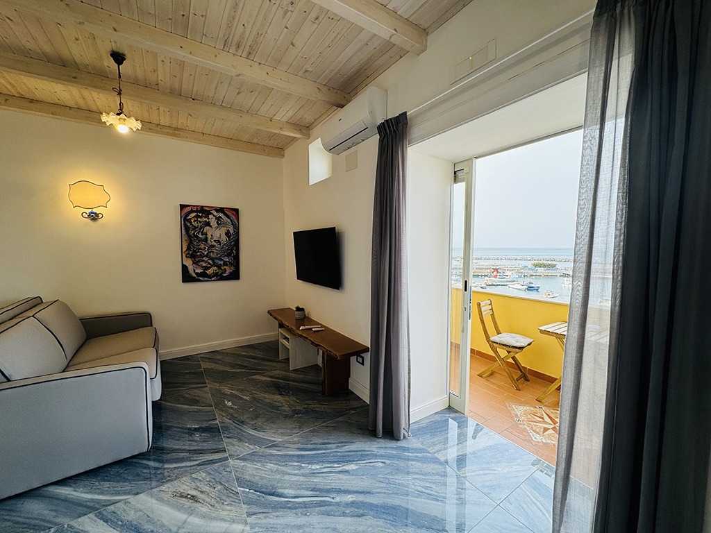 Appartamento costiero di nuova progettazione a Piano di Sorrento, con vista sul mare. Questo appartamento con una camera da letto può ospitare comodamente fino a tre persone e dispone di una spaziosa camera matrimoniale, un bagno moderno e una zona living open space con cucina ben attrezzata e un comodo divano letto. Godetevi l’incredibile panorama sul mare e l’atmosfera rilassante di questo elegante rifugio costiero.