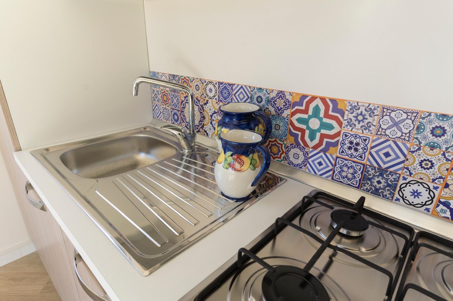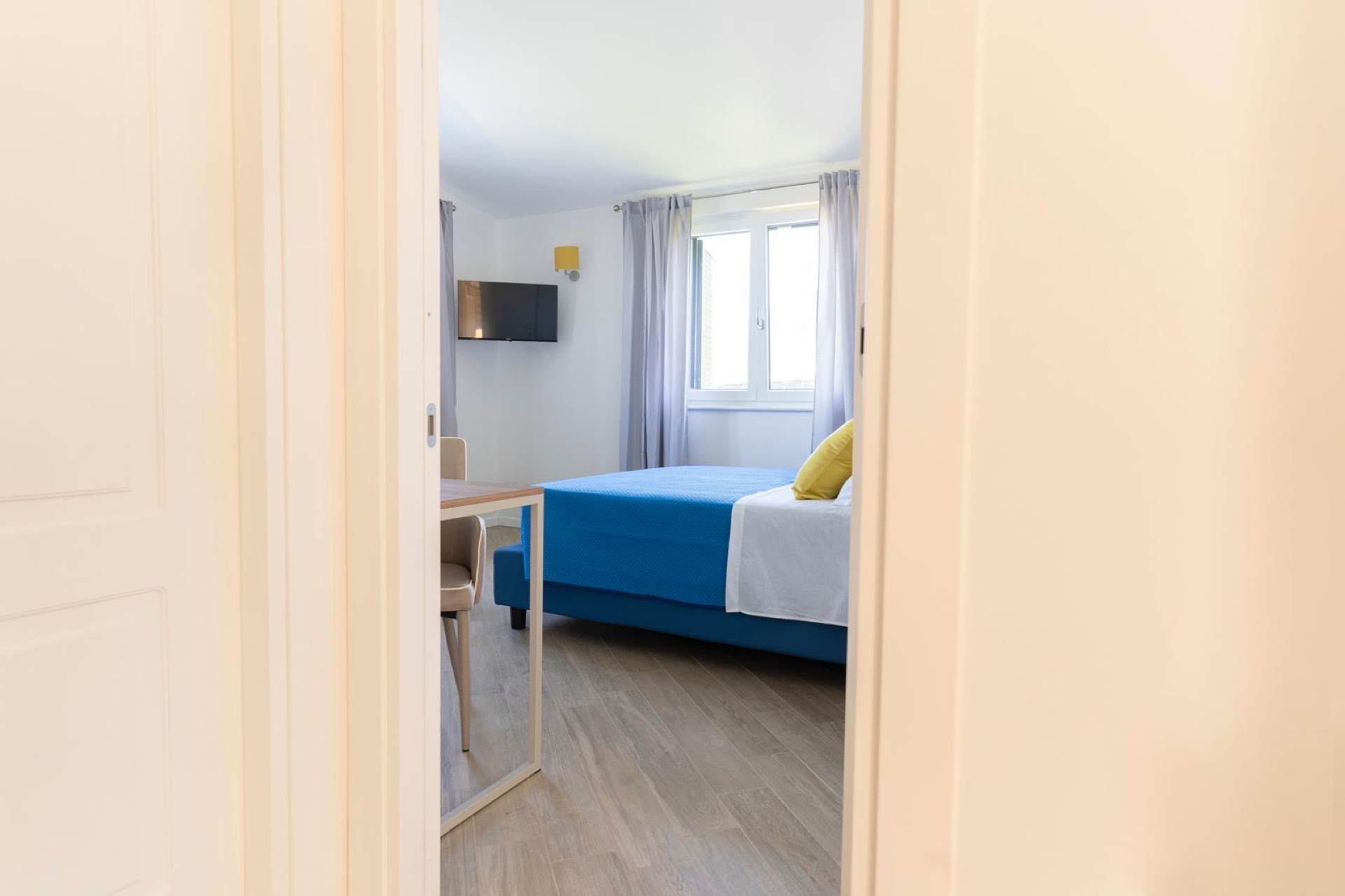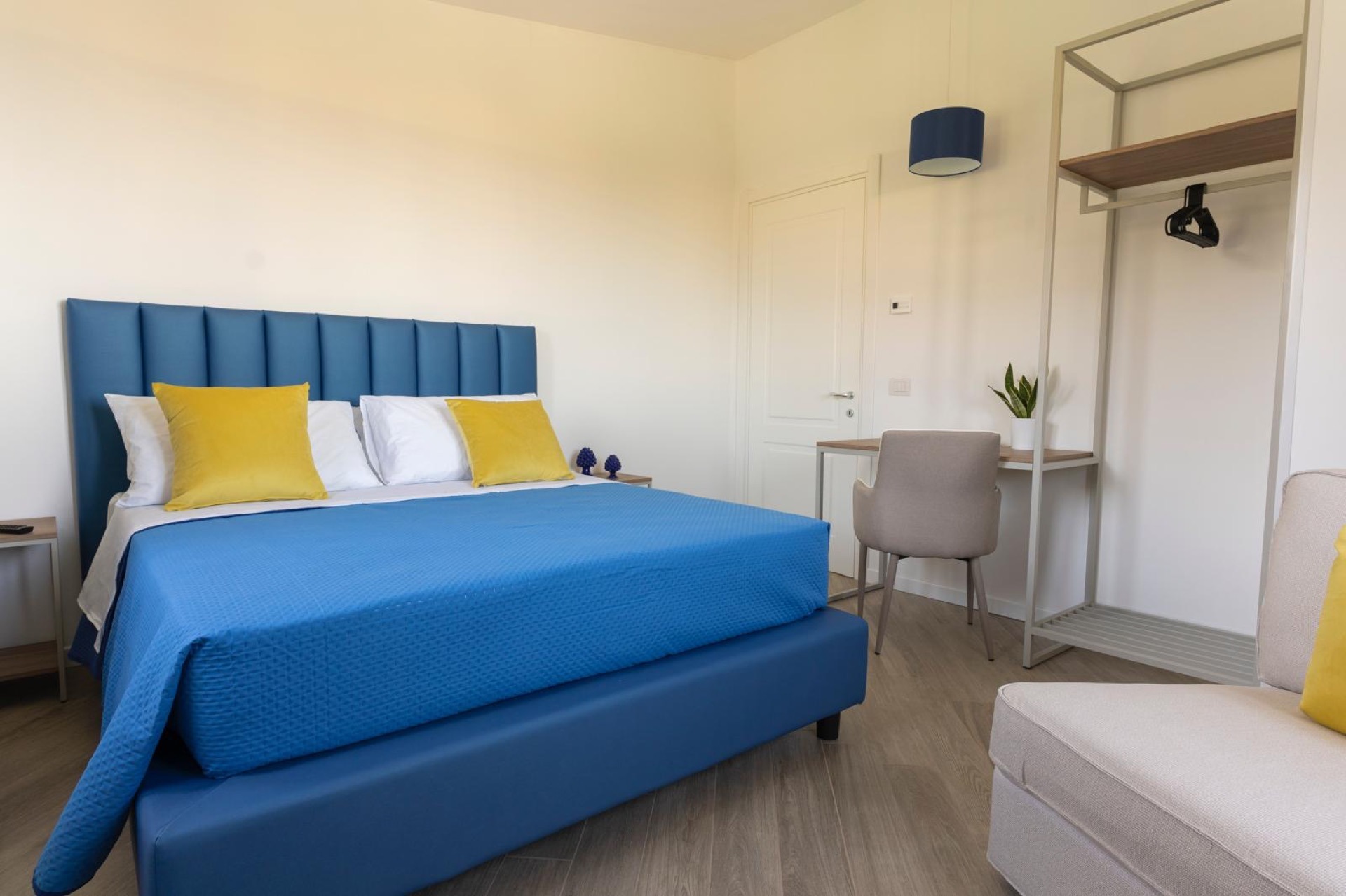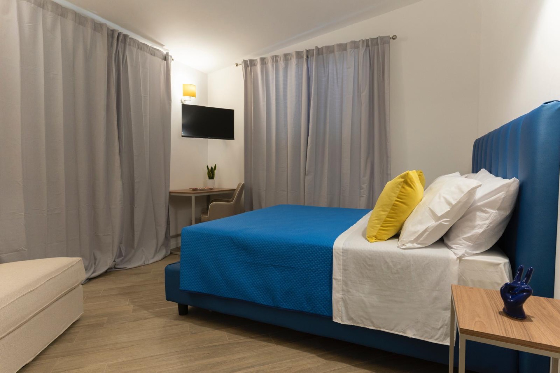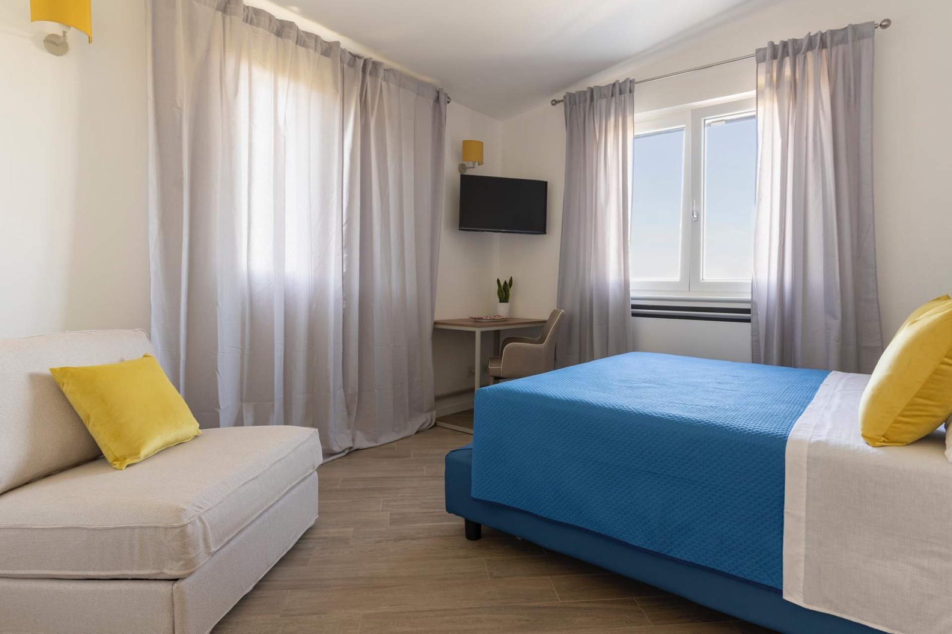 L'appartamento è composto da 2 stanze da letto, ciascuna con un letto matrimoniale e una poltrona-letto.