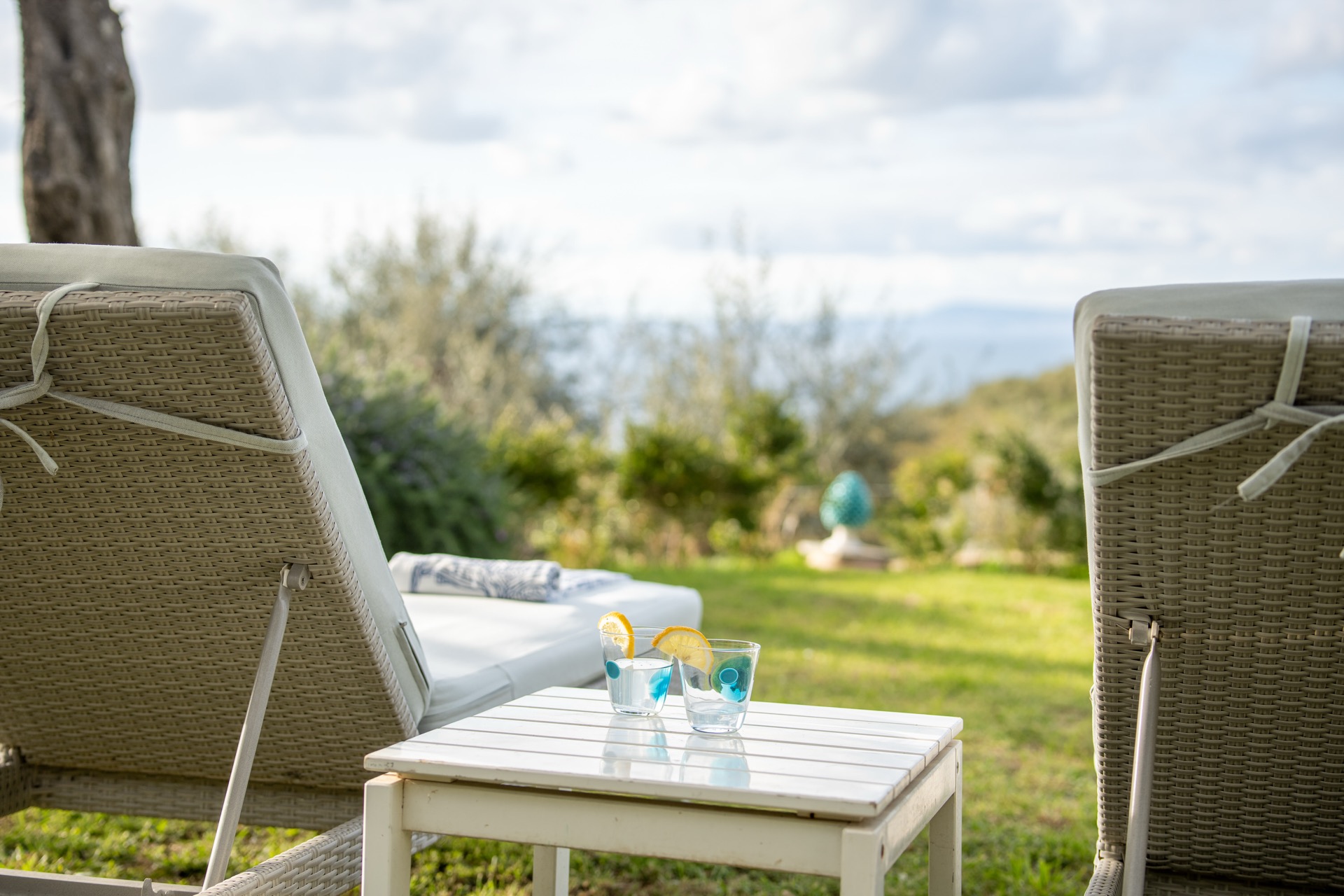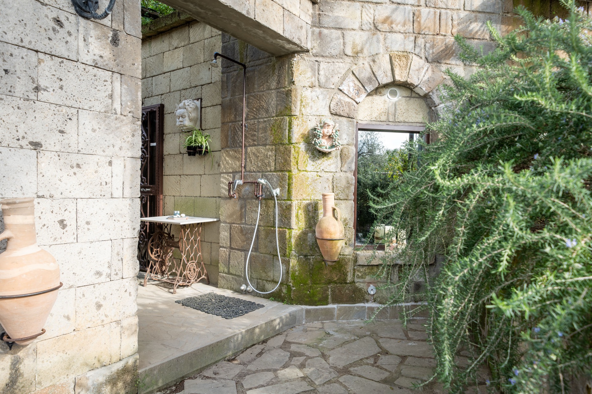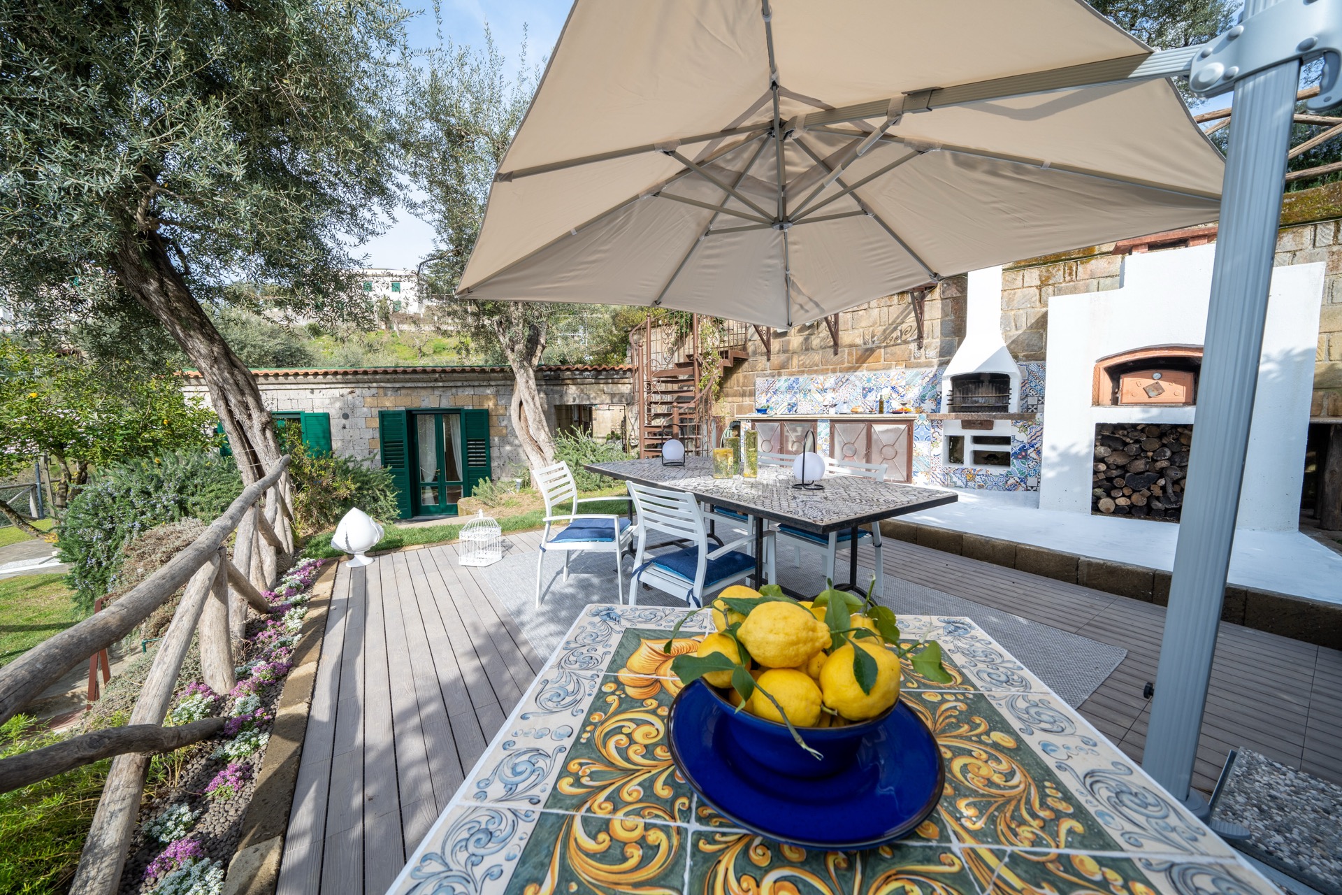 La casa è dotata di aria condizionata, wifi, lavatrice, ed è composta da 3 camere da letto, 2 bagni, e può ospitare fino a 6 persone. Lo spazio esterno è costituito dall' ampio giardino e arricchito da barbecue, zona pranzo all'aperto, forno a legna, zona solarium con Jacuzzi.