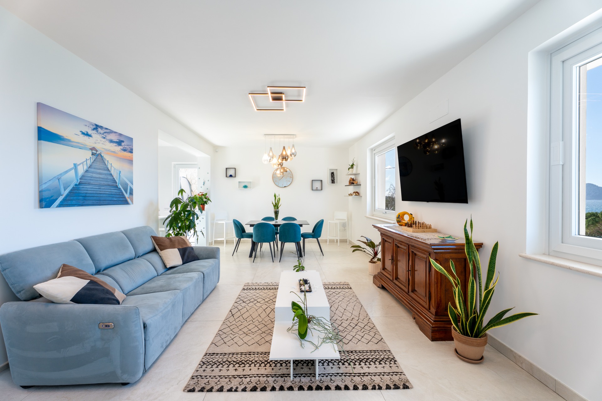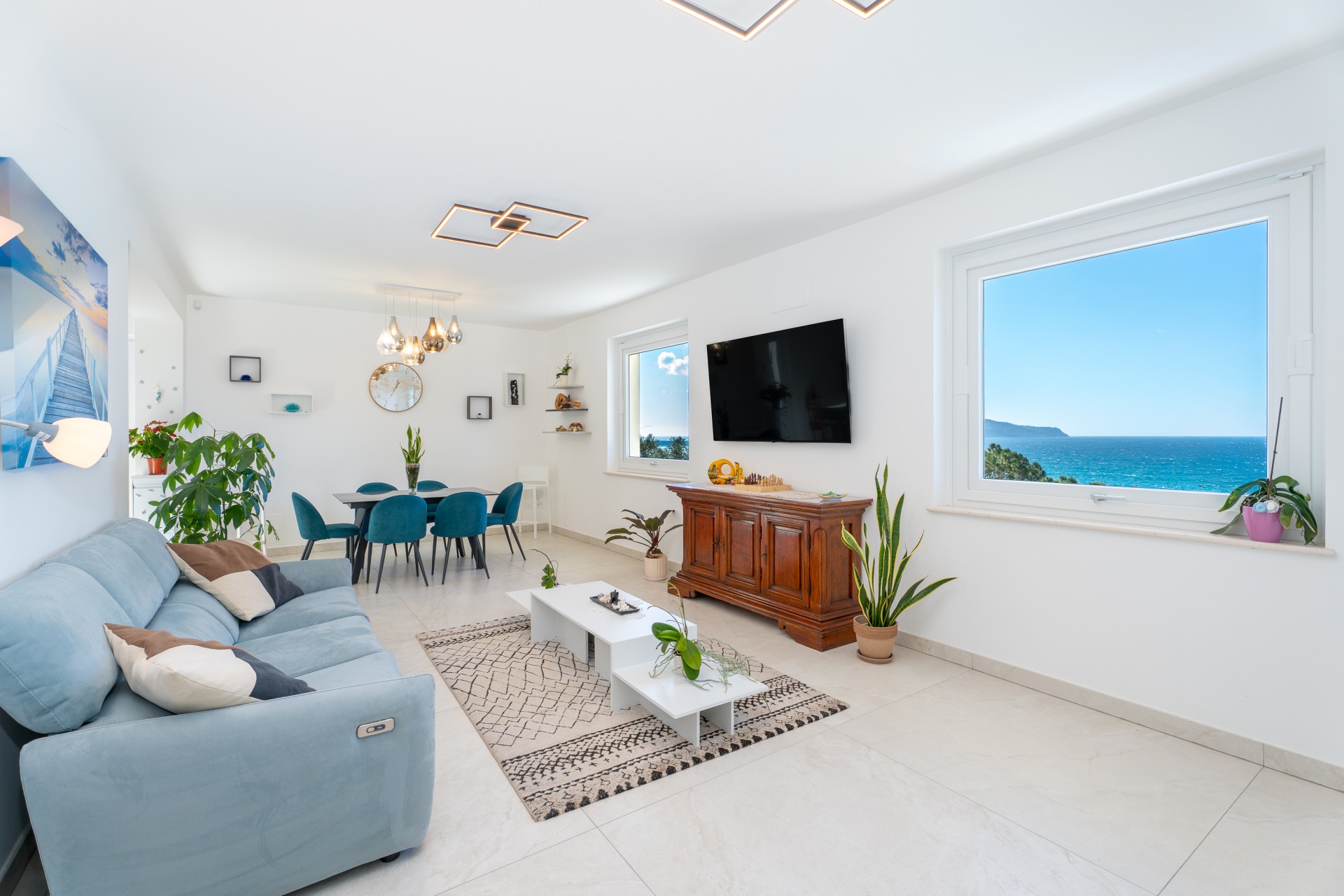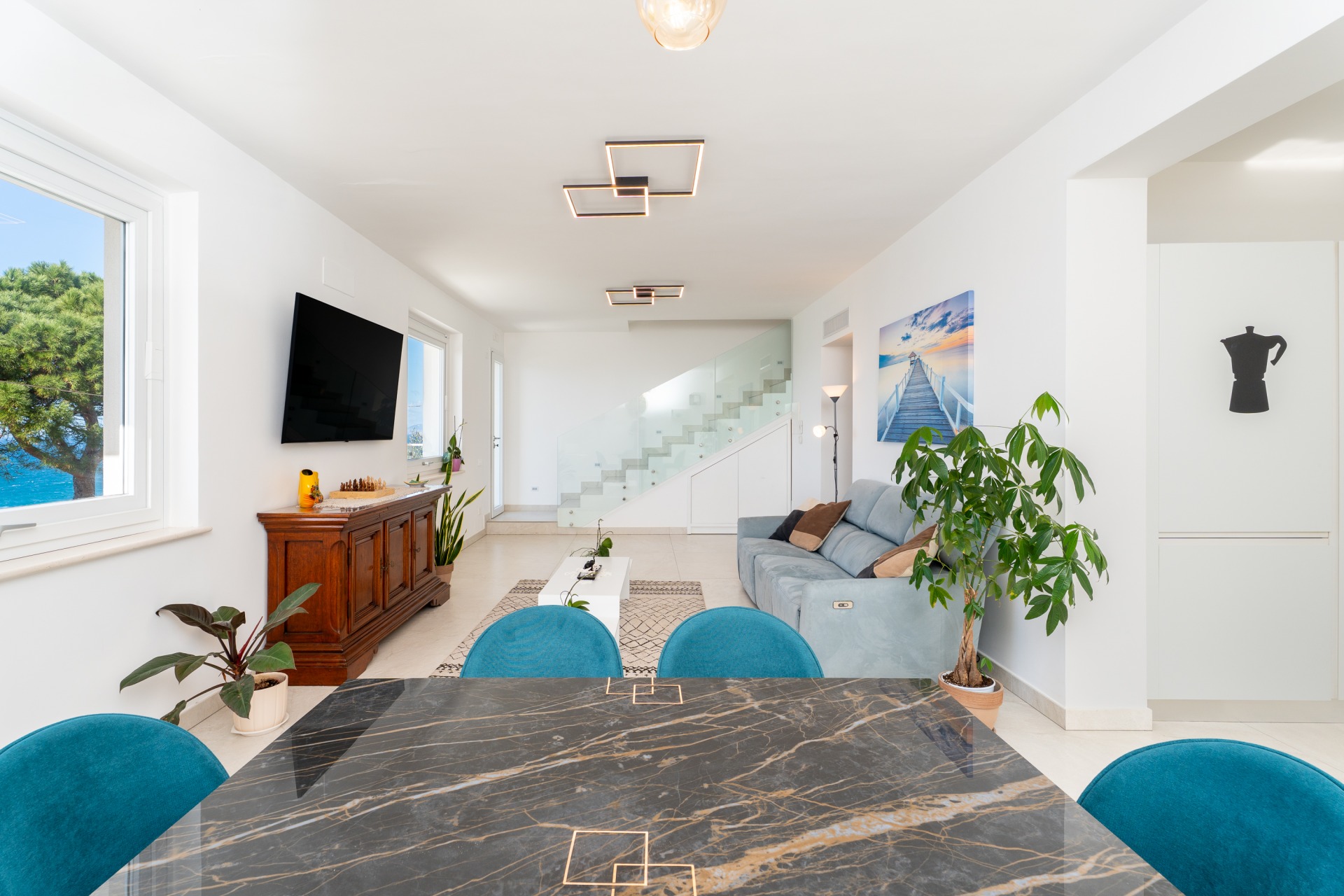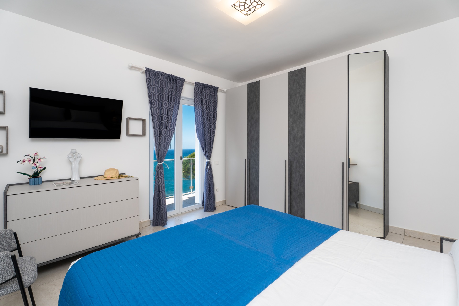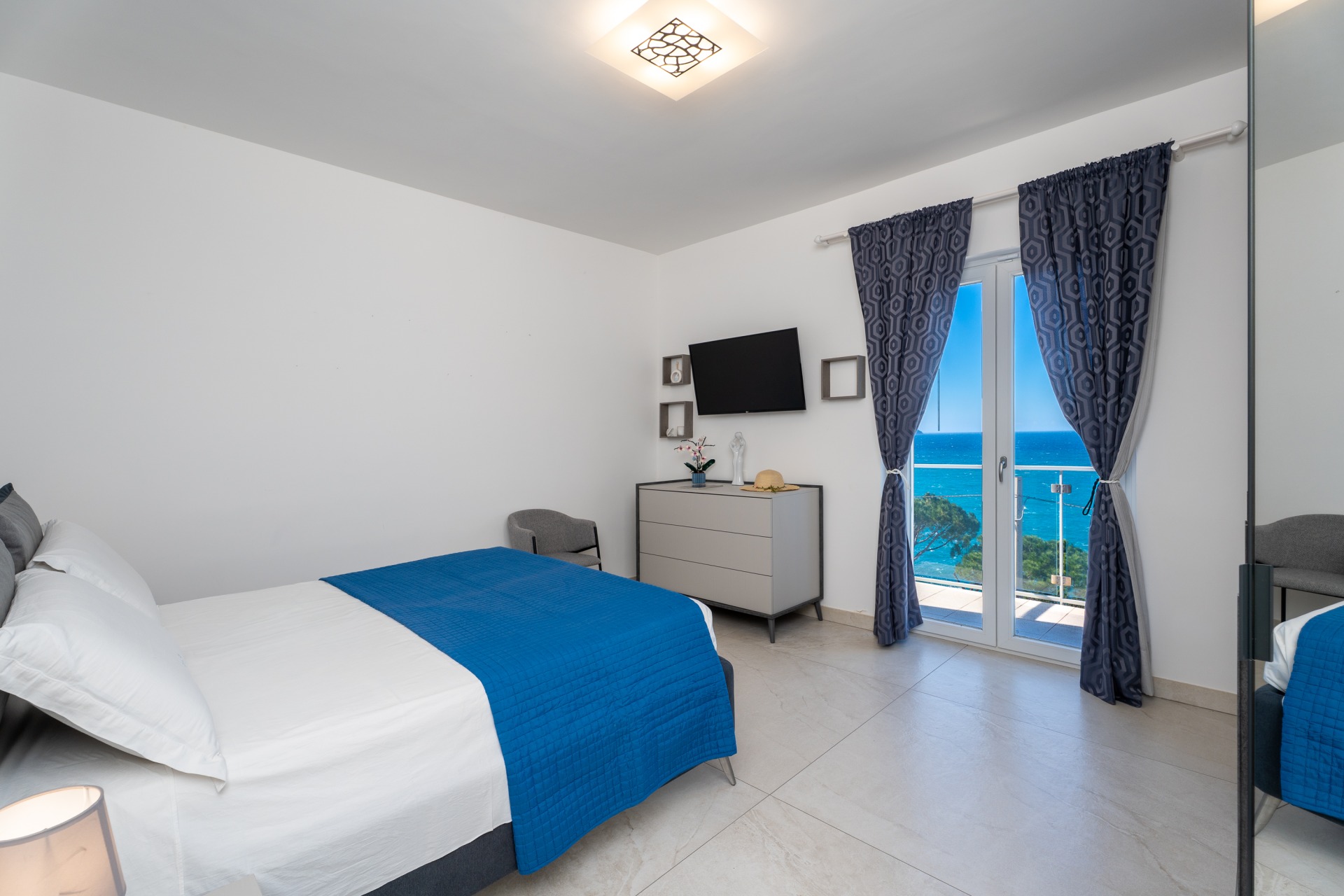 Villa panoramica a Massa Lubrense con vista mare mozzafiato su Capri. Disposta su due livelli, offre 3 camere, di cui 2 matrimoniali vista mare con balcone (1 con bagno ensuite) e 1 singola, 2 bagni aggiuntivi, ampio open space con cucina moderna e soggiorno luminoso. All’esterno jacuzzi privata panoramica e area pranzo all’aperto. Parcheggio privato per 2 auto (1 media e 1 piccola). Relax e panorama in posizione esclusiva.